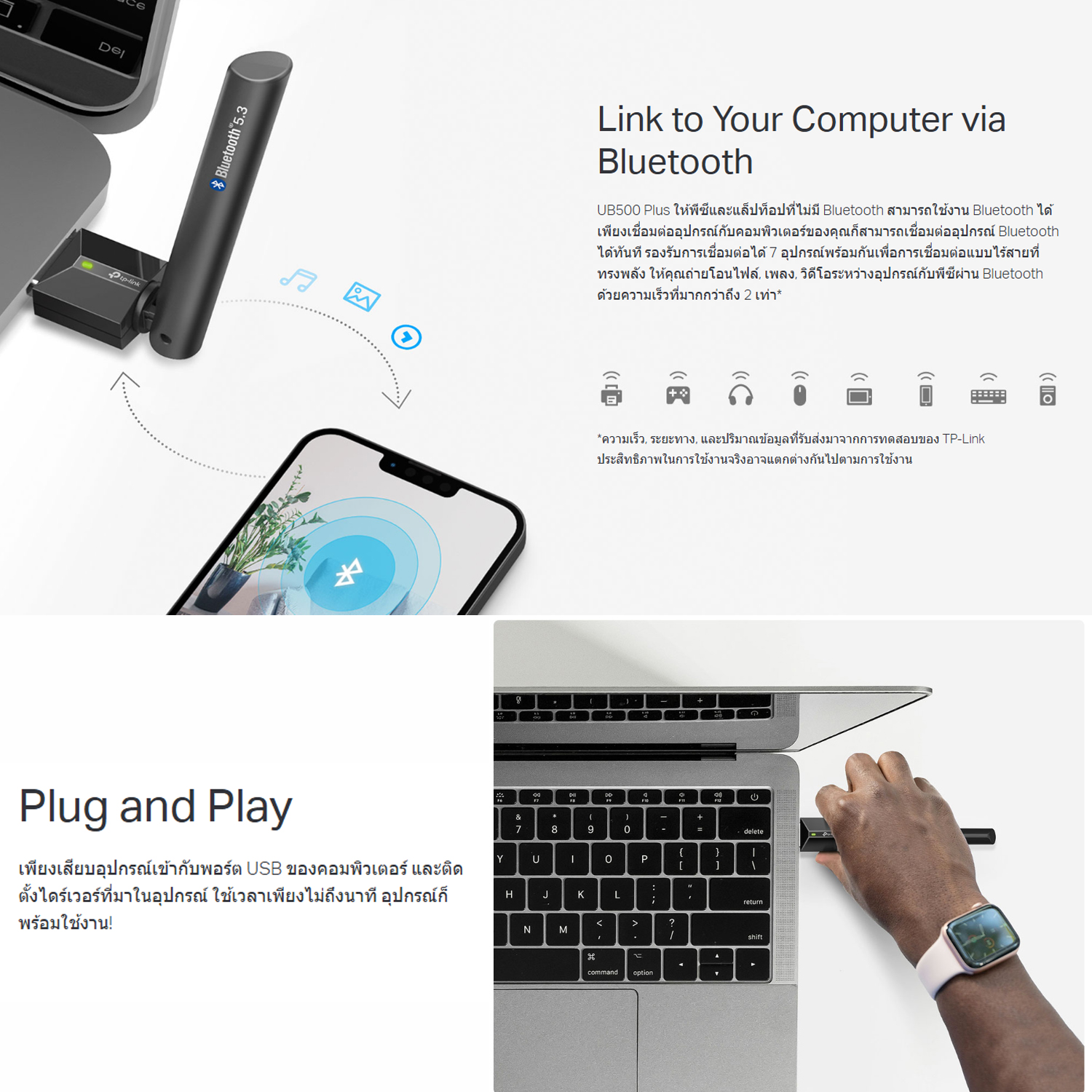 ✨Wireless Connectivity – ให้ความเสถียรและความสะดวกสบายในการเชื่อมต่อระหว่างอุปกรณ์ Bluetooth กับพีซีหรือแล็ปท็อปของคุณ