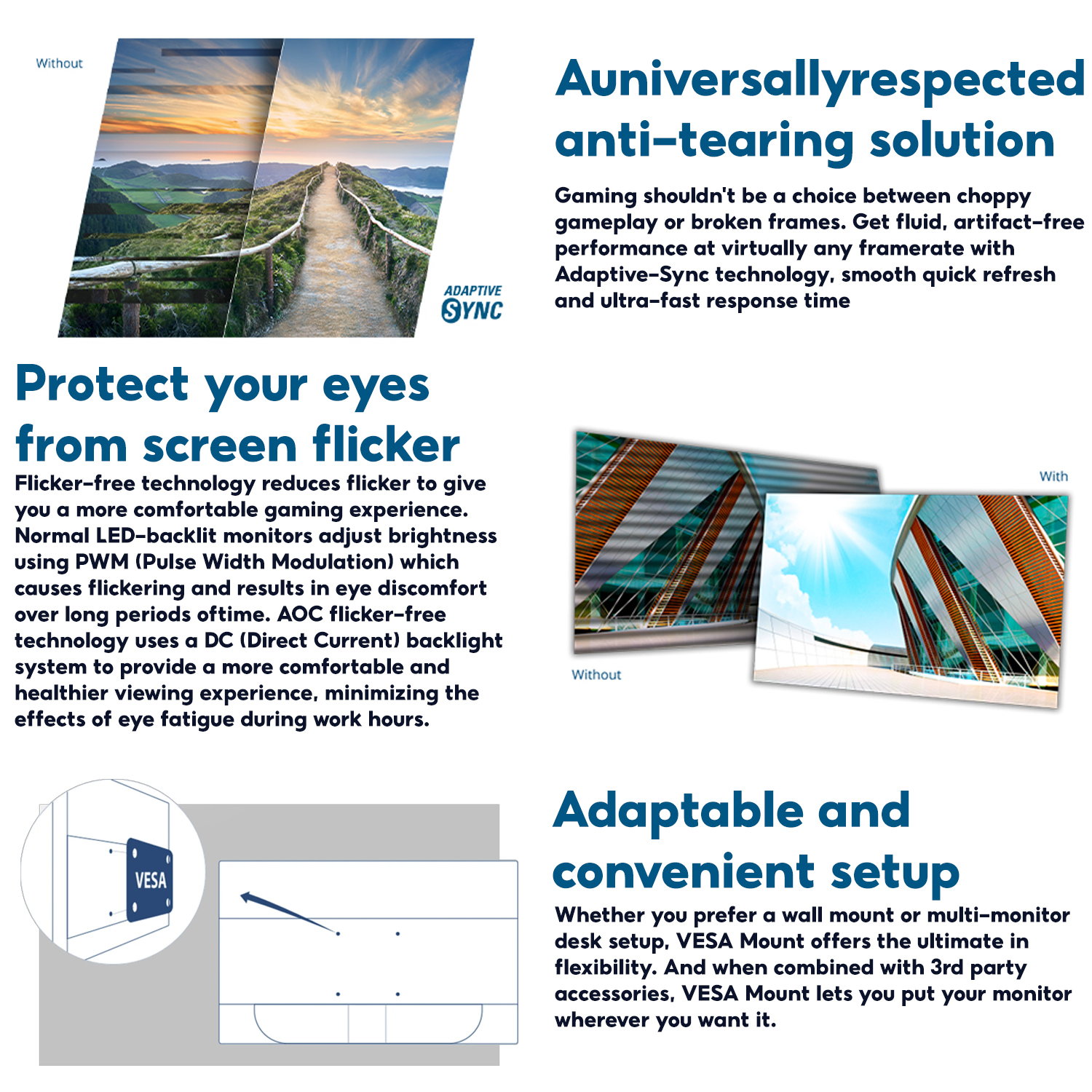 ⭐Adjustable Stand : Tilt: -5° ~ 23°
