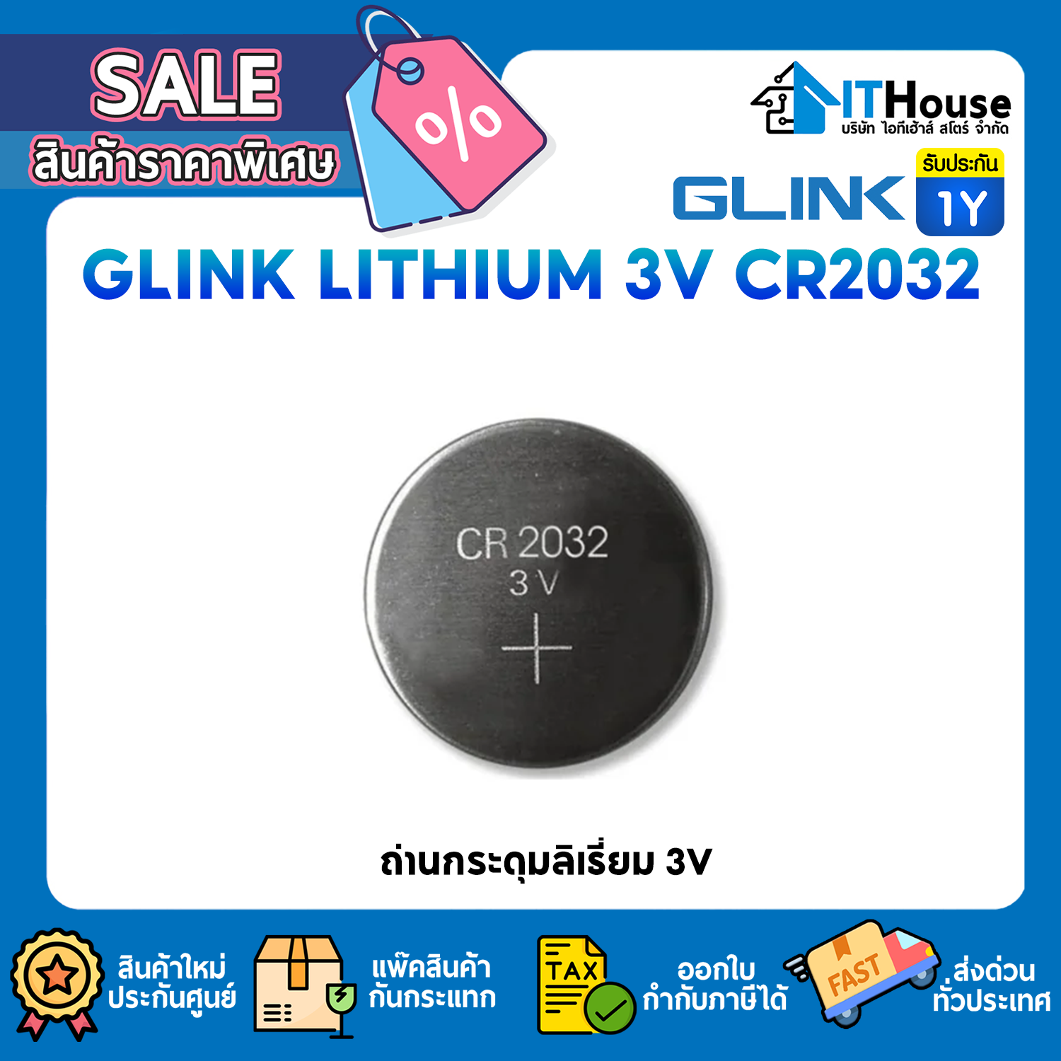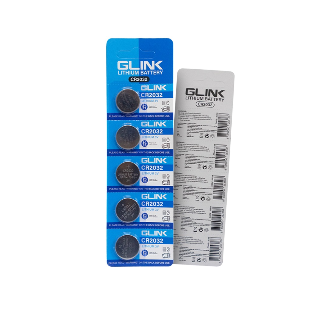 ✅มาตรฐาน GLINK CR2032 LITHIUM 3V ถ่านกระดุม ถ่านไบออน คุณภาพดี แบตเตอรี่ลิเธียม ทรงกลม แบน (1แพ็ค/5ก้อน) 2032