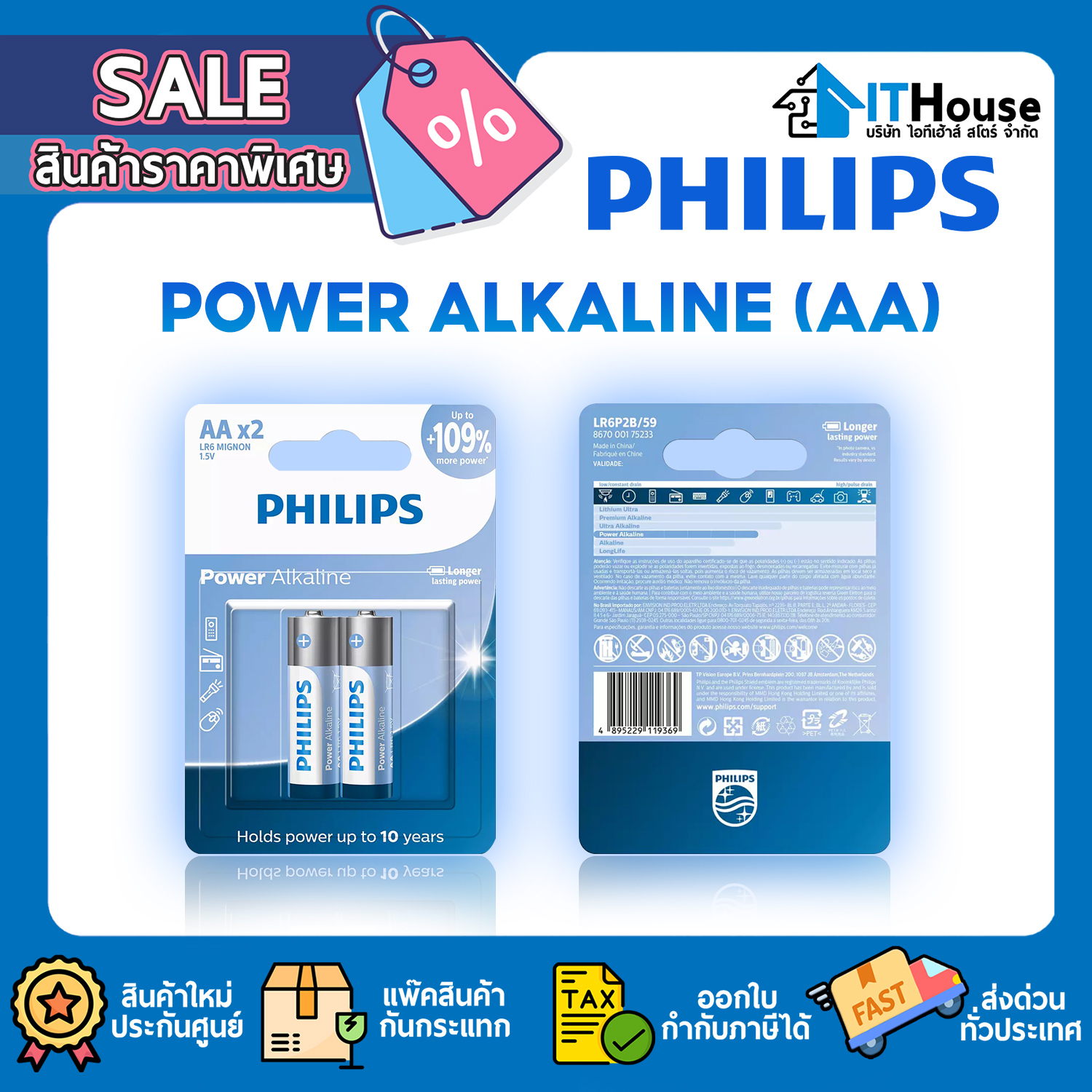 Philips มีแบตเตอรี่ที่มีการใช้งานบ่อย (AA, AAA, C, D, 9V) อย่างครบถ้วนในขนาดบรรจุหลากหลายขนาด เพื่อตอบสนองความต้องการใช้งานของคุณ