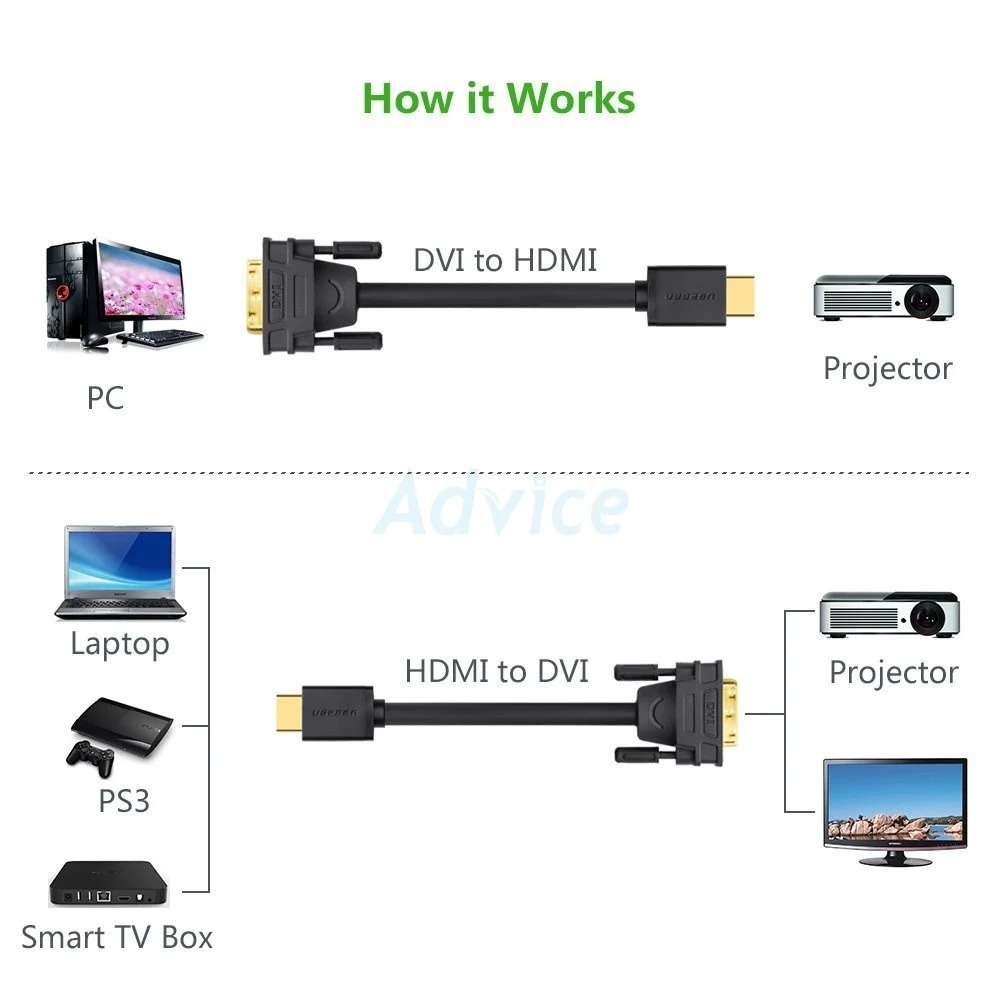 - สายแปลงสัญญาณภาพ 2 ทาง HDMI เป็น DVI-D หรือ DVI-D เป็น HDMI รองรับภาพขนาด FHD 1080P