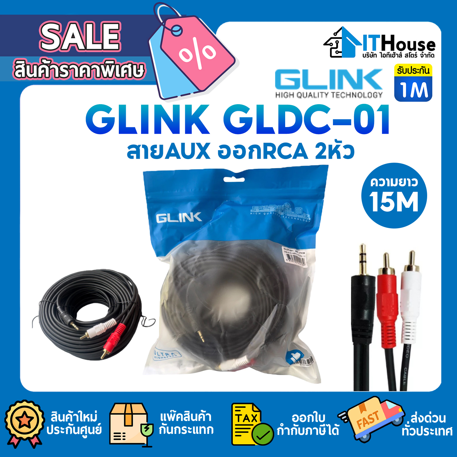 สายลำโพง ยาว 1.8-5m 3.5mm Jack Aux to 2 RCA Audio Video Cable Stereo Y Splitter