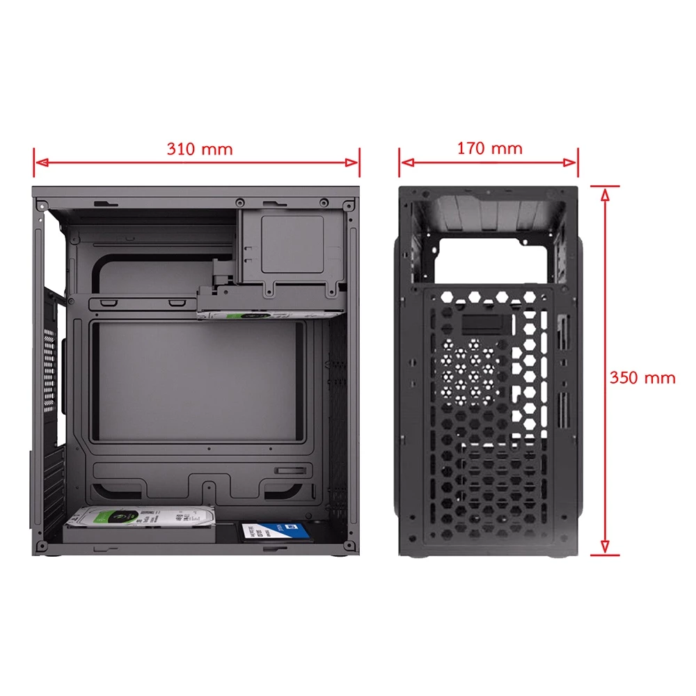 Chassis Size (D x W x H): 310 x 170 x 350 mm.