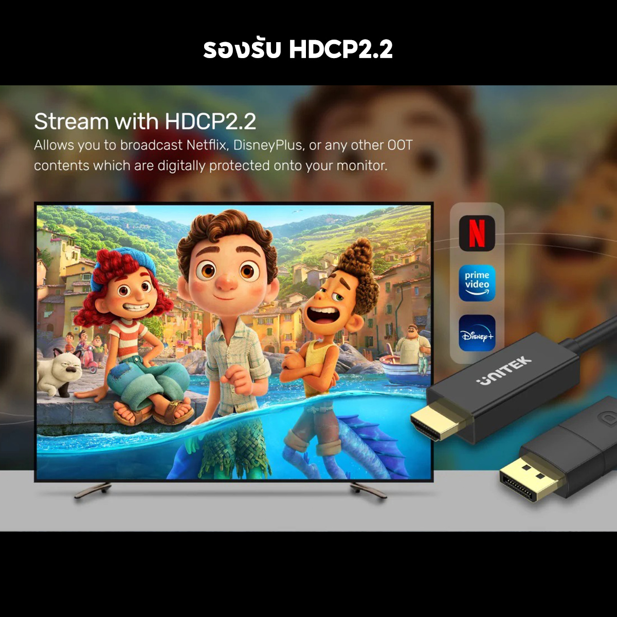 - Stream with HDCP2.2 - Allows you to broadcast Netflix, DisneyPlus, or any other OTT contents which are digitally protected onto your monitor.