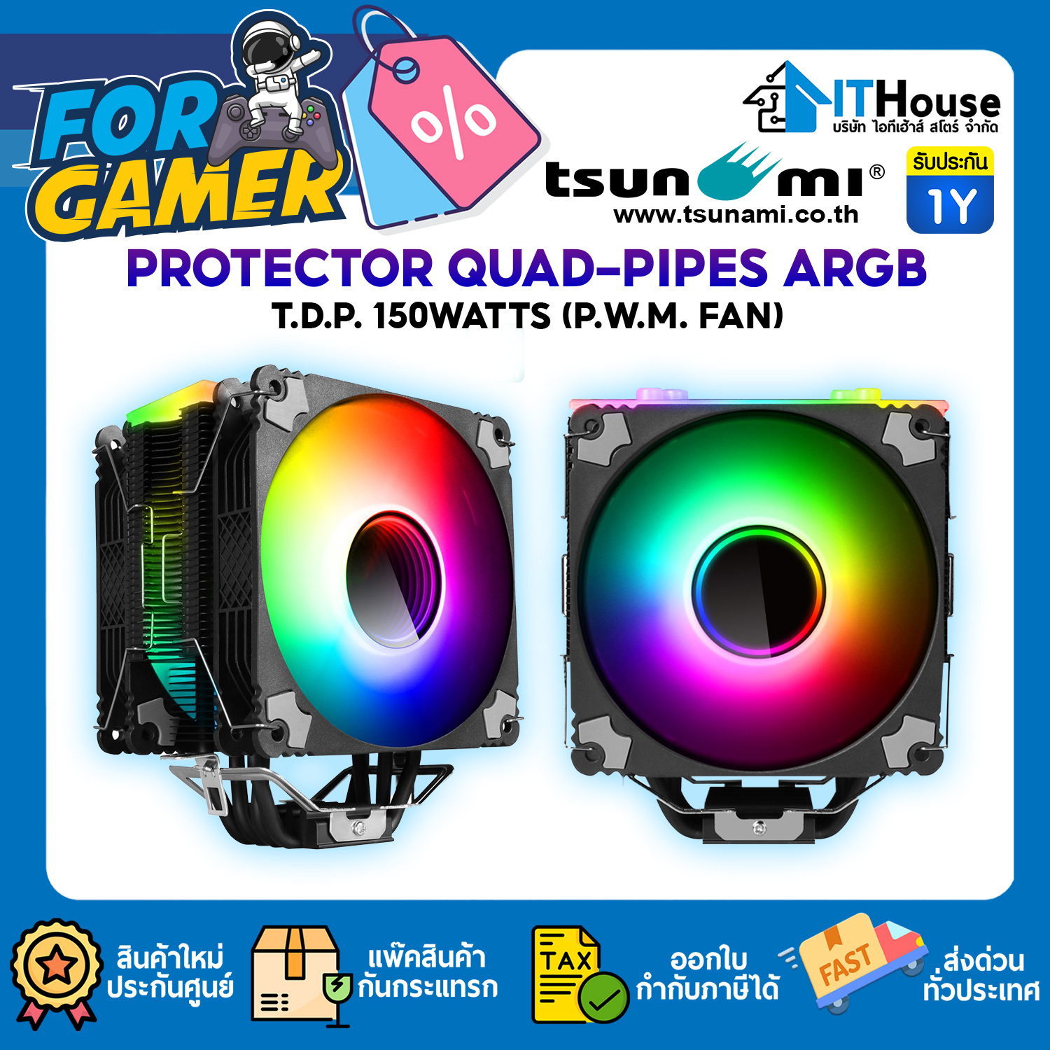 Tsunami Protector 1264 P.W.M. (150W) Quad Heatpipe ARGB CPU Cooler