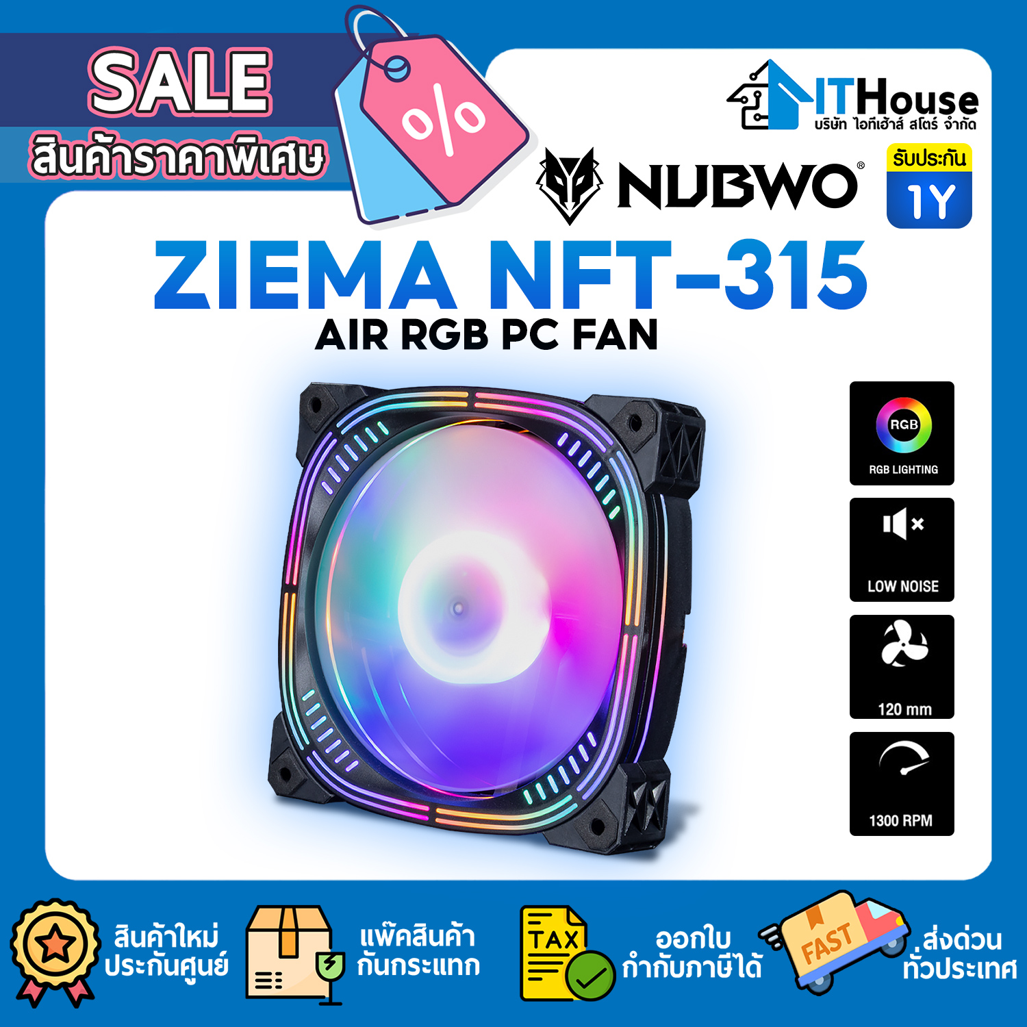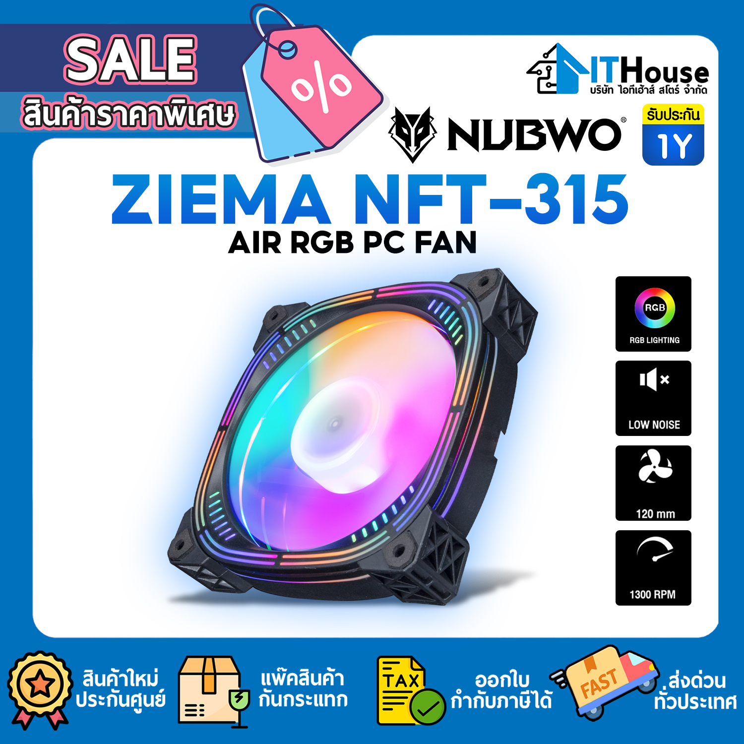 FAN CASE : NUBWO NFT316 ARGB PC FAN 3 IN 1 (WHITE) #1Y
