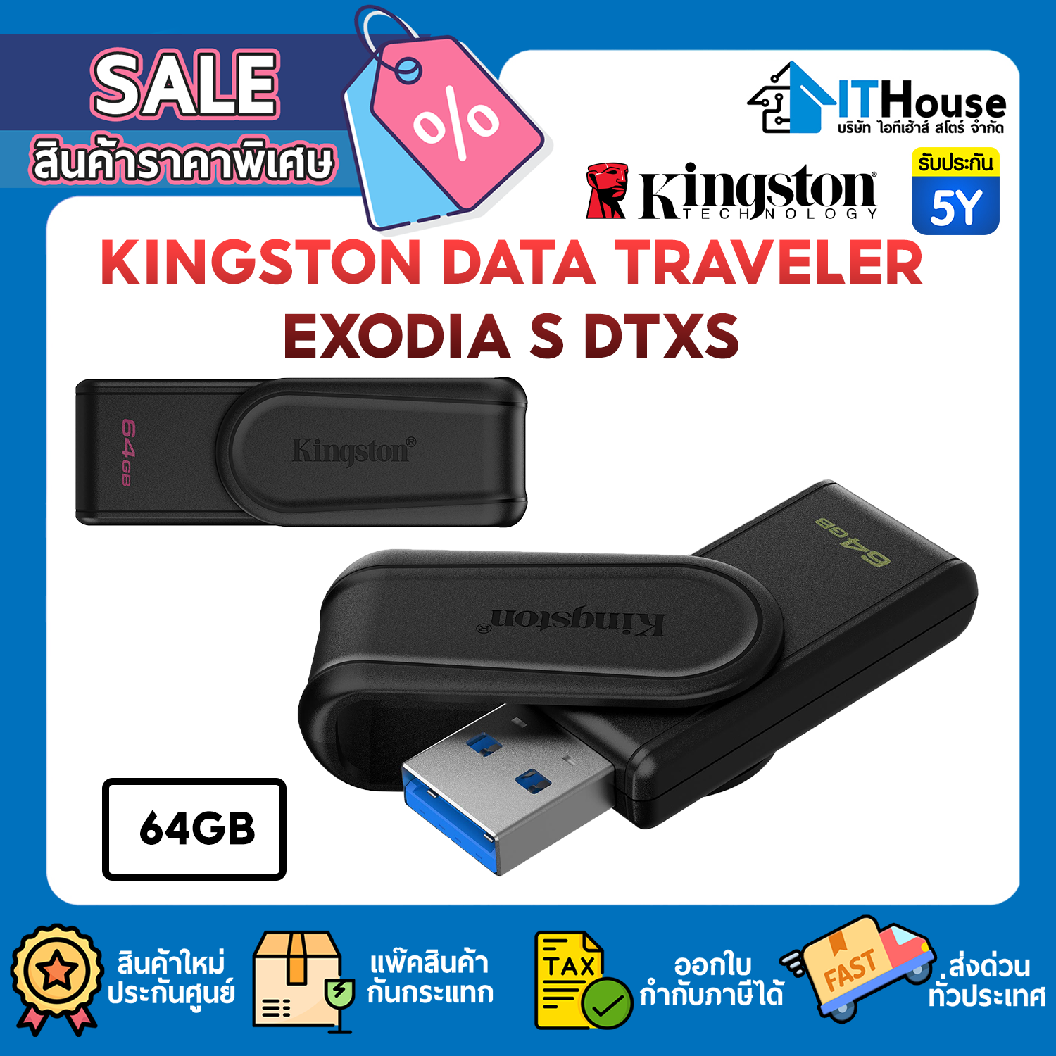 FLASH DRIVE : KINGSTON DATA TRAVELER EXODIA S DTXS/64GB USB.3.2 (BLACK) #5Y