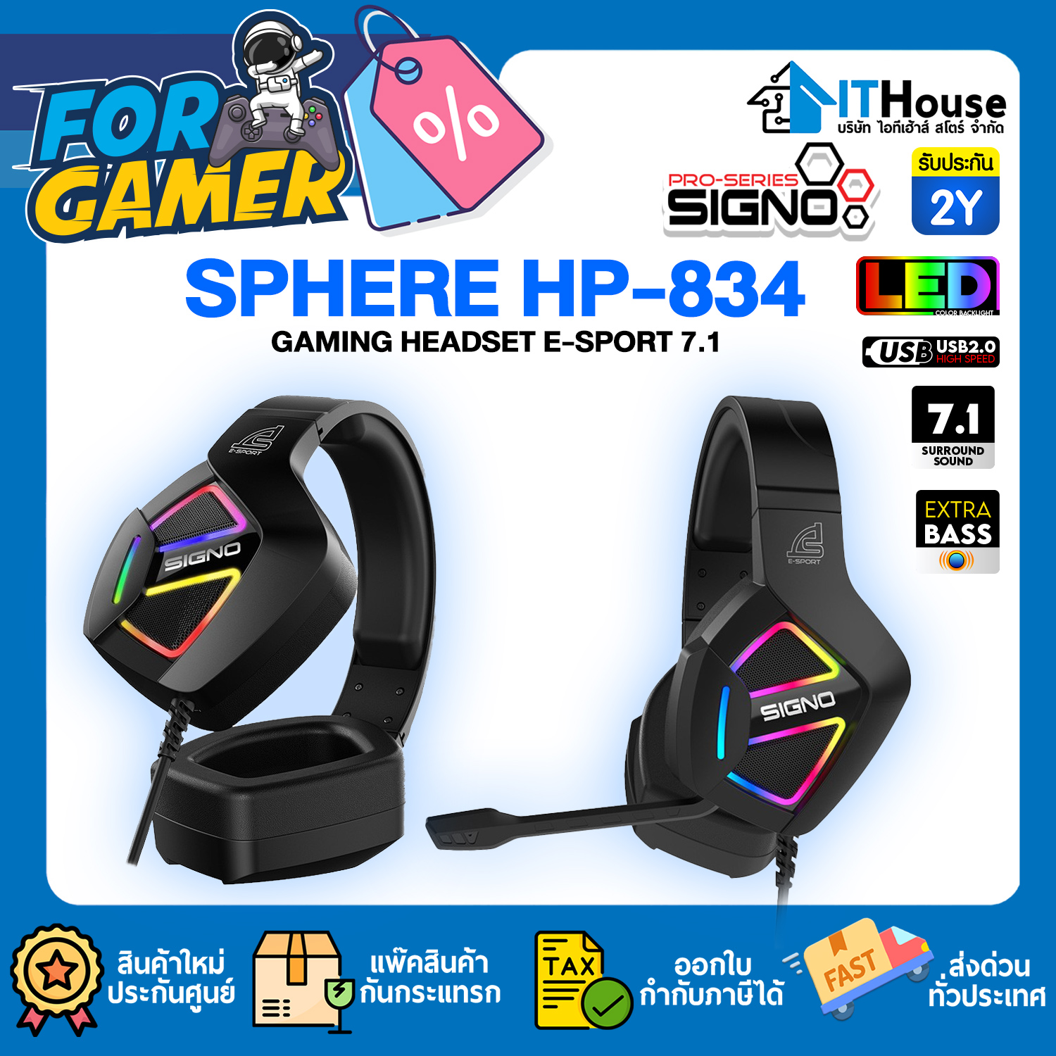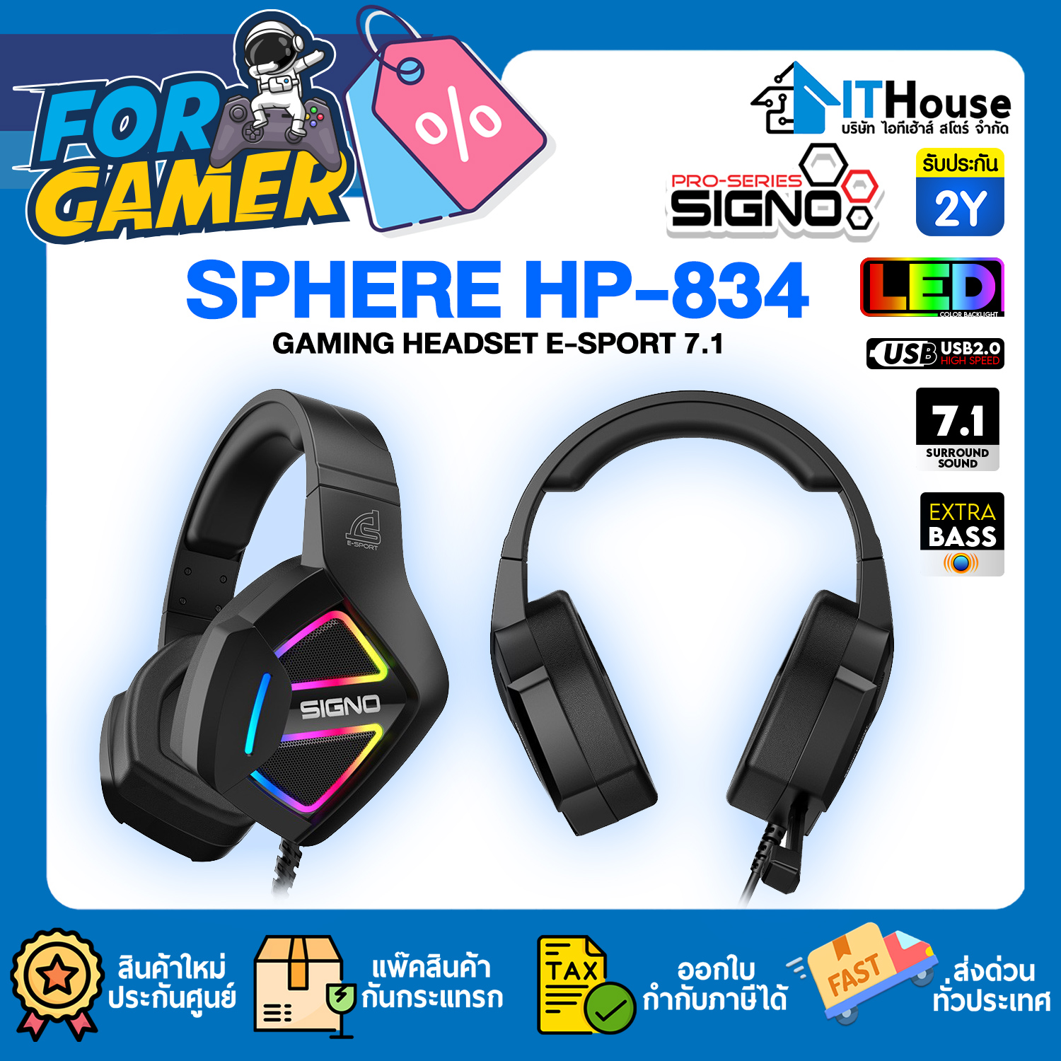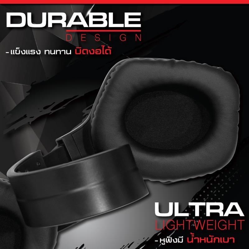 SIGNO HP 834 SPHERE หูฟัง 7.1 จำลองให้เสียงที่ชัดเจนและแม่นยำเก็บทุกรายละเอียด ไฟรูปแบบ RGB ฟองน้ำครอบหู ใส่สบายไม่หนีบหู ยืดกระชับตามสรีระของศีรษะ รีโมทควบคุมการทำงานระดับเสียงและเปิด- ปิด ไมค์กับไฟ