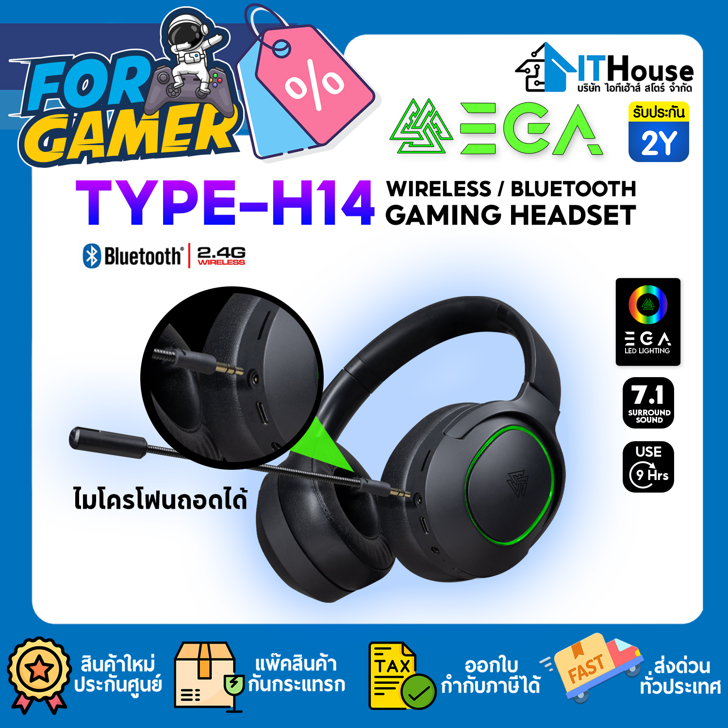 TRI-MODE HEADSET (7.1) : EGA TYPE GH4 PRO (BLACK) #2Y