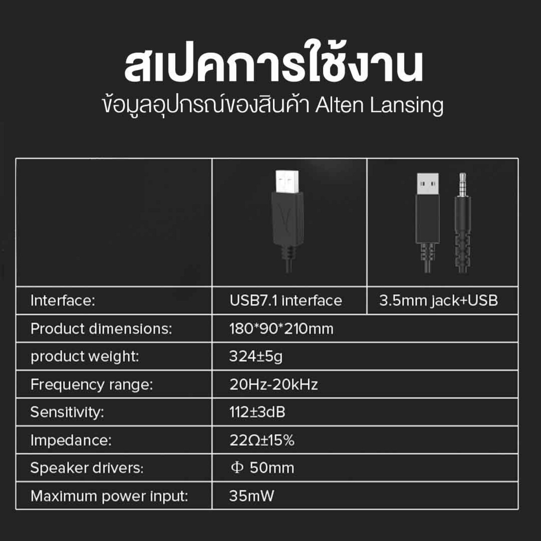 ALTEC LANSING ALGH9602 HEADPHONE เชื่อมต่อด้วยแจ๊ค 3.5 mm. DRIVER ขนาด 50MM มาพร้อมไฟ LED แบบไล่ระดับ