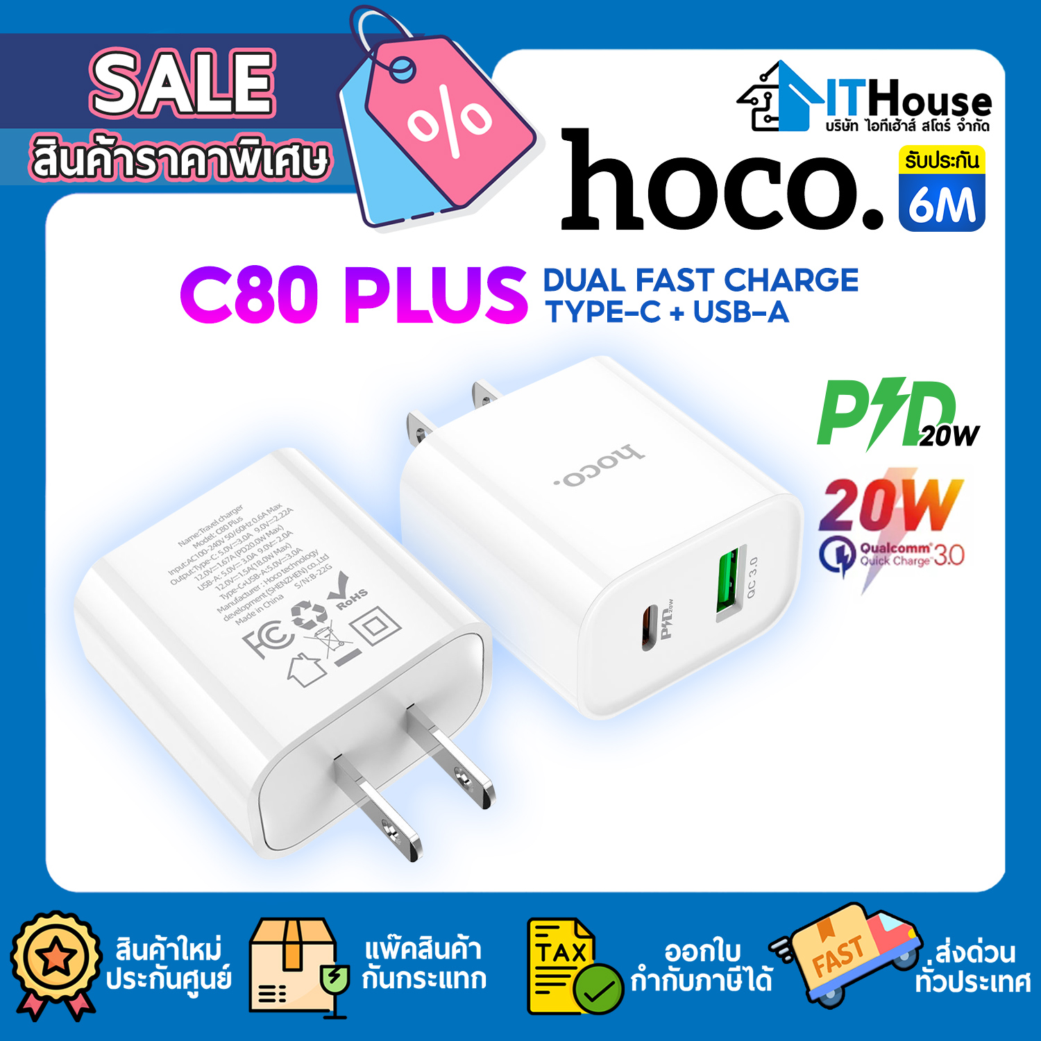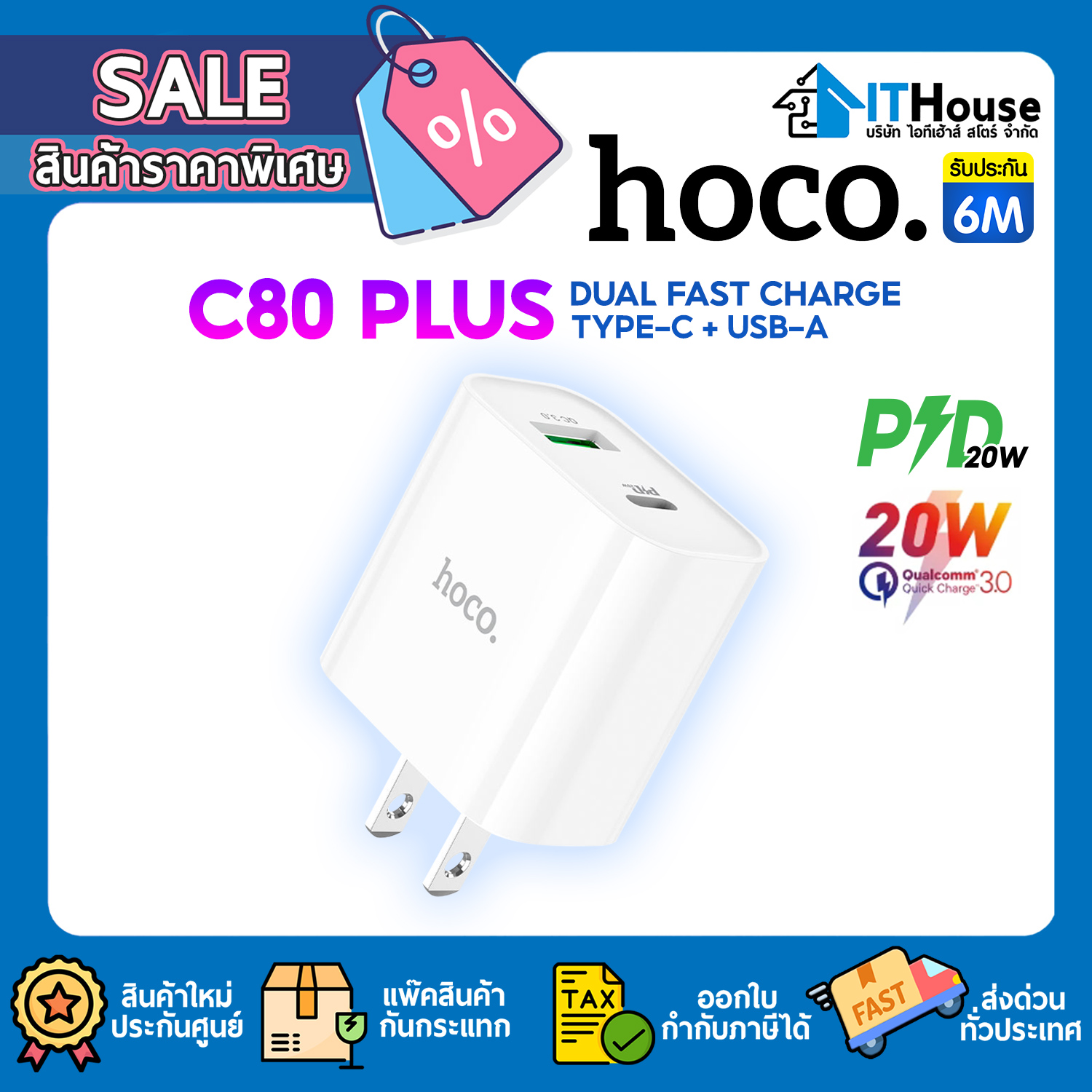HOCO รุ่น C80 plus ปลั๊กชาร์จ PD