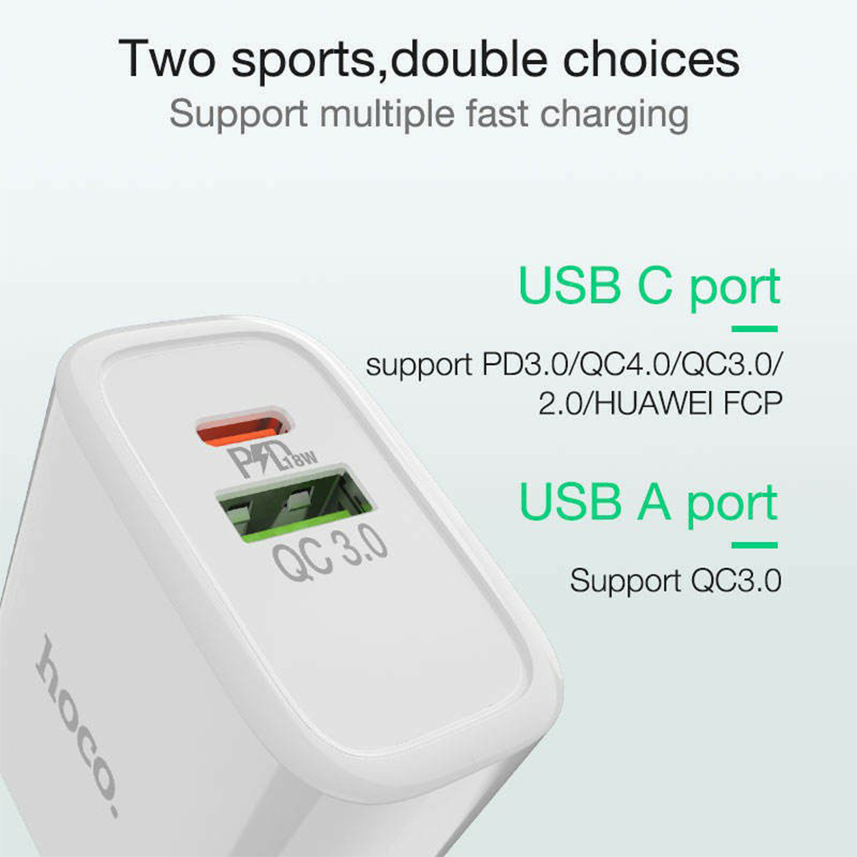 Hoco ชุดชาร์จเร็ว C80 plus ชุดชาร์จ 18W พร้อมสาย Type-C to Type-C (3A)