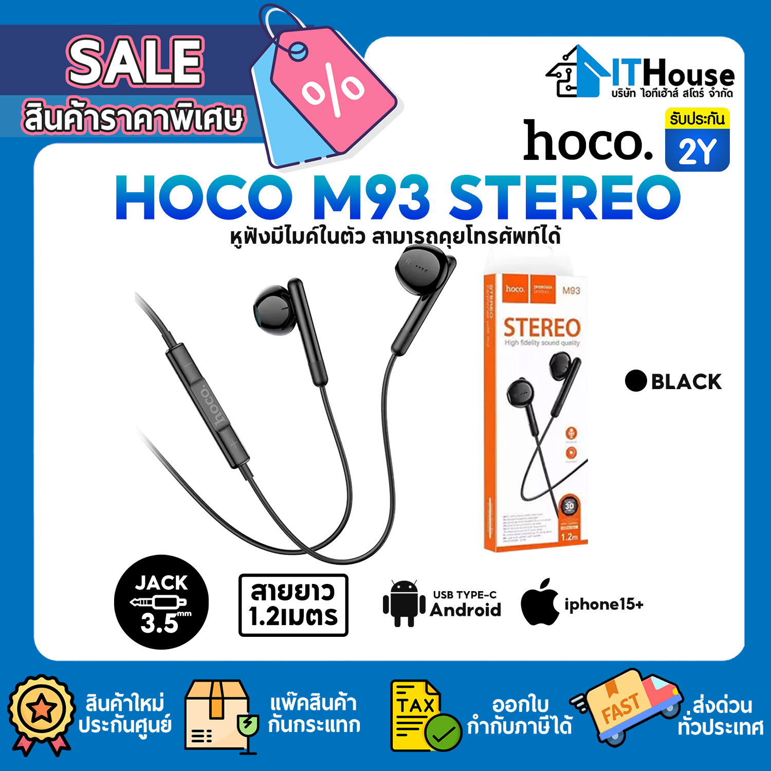 HOCO : M93 STEREO TYPE-C 1.2M (BLACK) #1Y