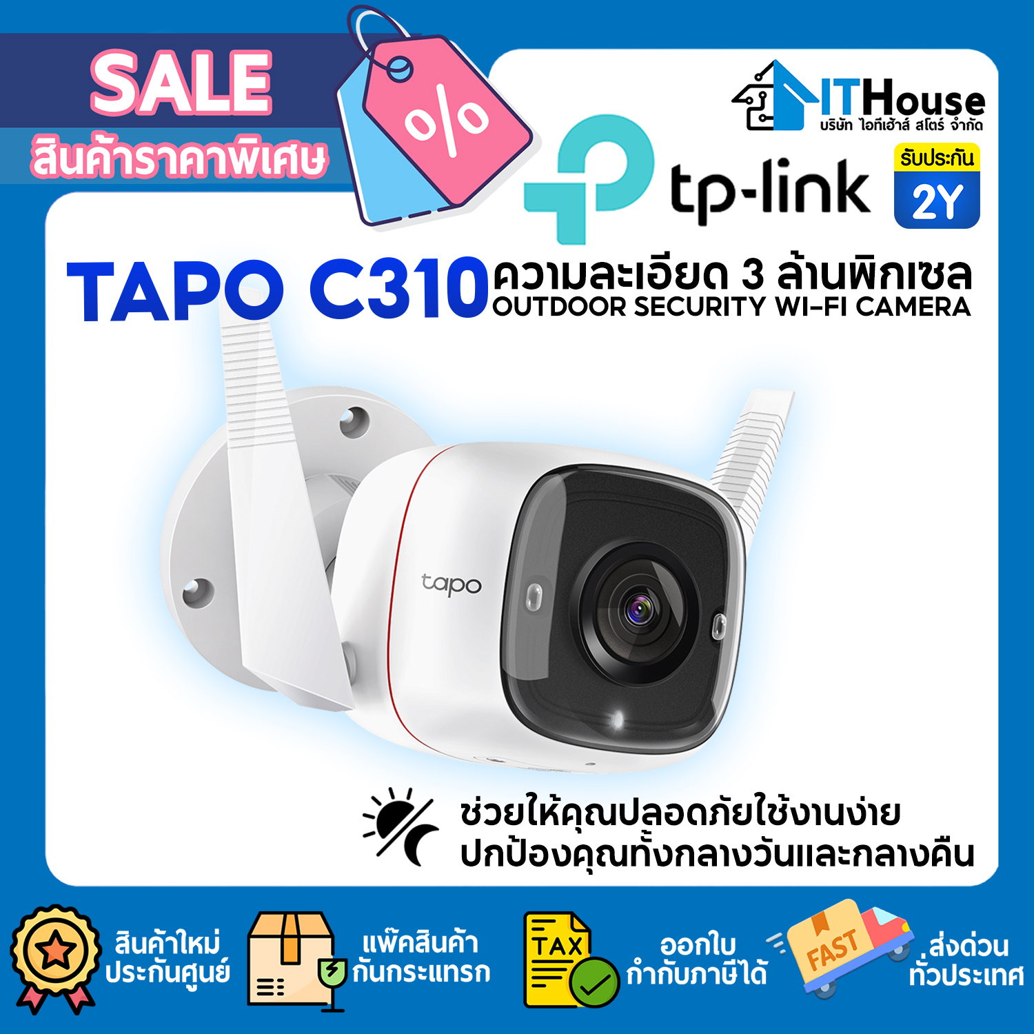 เลือกติดตั้งกล้องวงจรปิด IP Camera รุ่น Tapo C310 ความละเอียด 3 ล้านพิกเซล ทนแดด ทนฝน กล้องวงจรปิดไร้สาย กล้องวงจรปิด Wi-Fi กล้อง CCTV กล้องกันขโมย Security Camera กล้องวงจรปิดอัจฉริยะ ที่รองรับอุปกรณ์ IoT