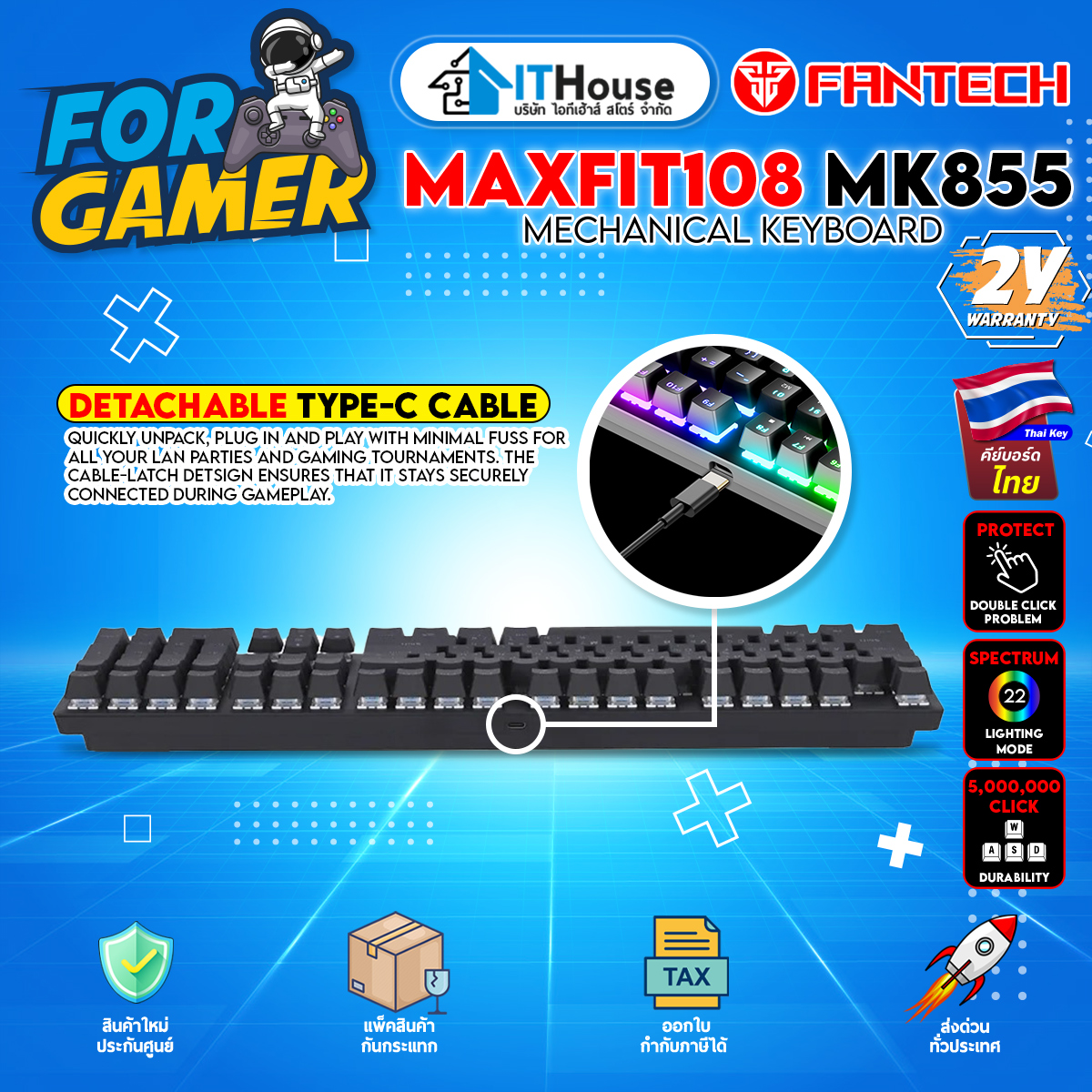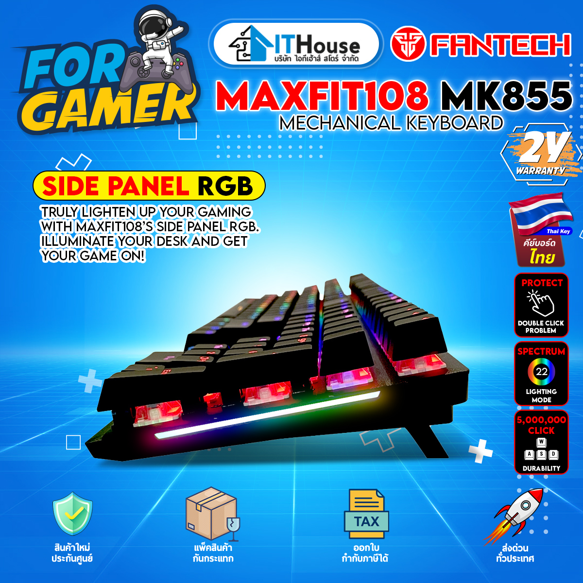 FANTECH MAXFIT 108 MK855 คีย์บอร์ดระบบไฟ 22 โหมด RGB Backlighting & Side Panel เชื่อมต่อ Type-C ตั้งมาโครได้
