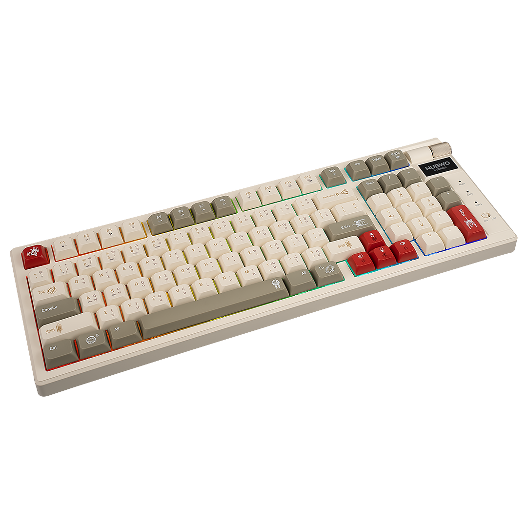 คีย์บอร์ดเกมมิ่ง รุ่น X803 ไฟแบบ Mini RGB มีสองสีให้เลือก Color Grey-Black / Cream-Brown ขนาด 98% มีปุ่มทั้งหมด 97 ปุ่ม ไร้สายเชื่อมต่อได้ 3 โหมด ด้วย Wireless 2.4G / Bluetooth 5.0 / USB รองรับการกด 50 ล้านครั้ง ความจุแบตเตอรี่ขนาด 2000 mAh🌈💥