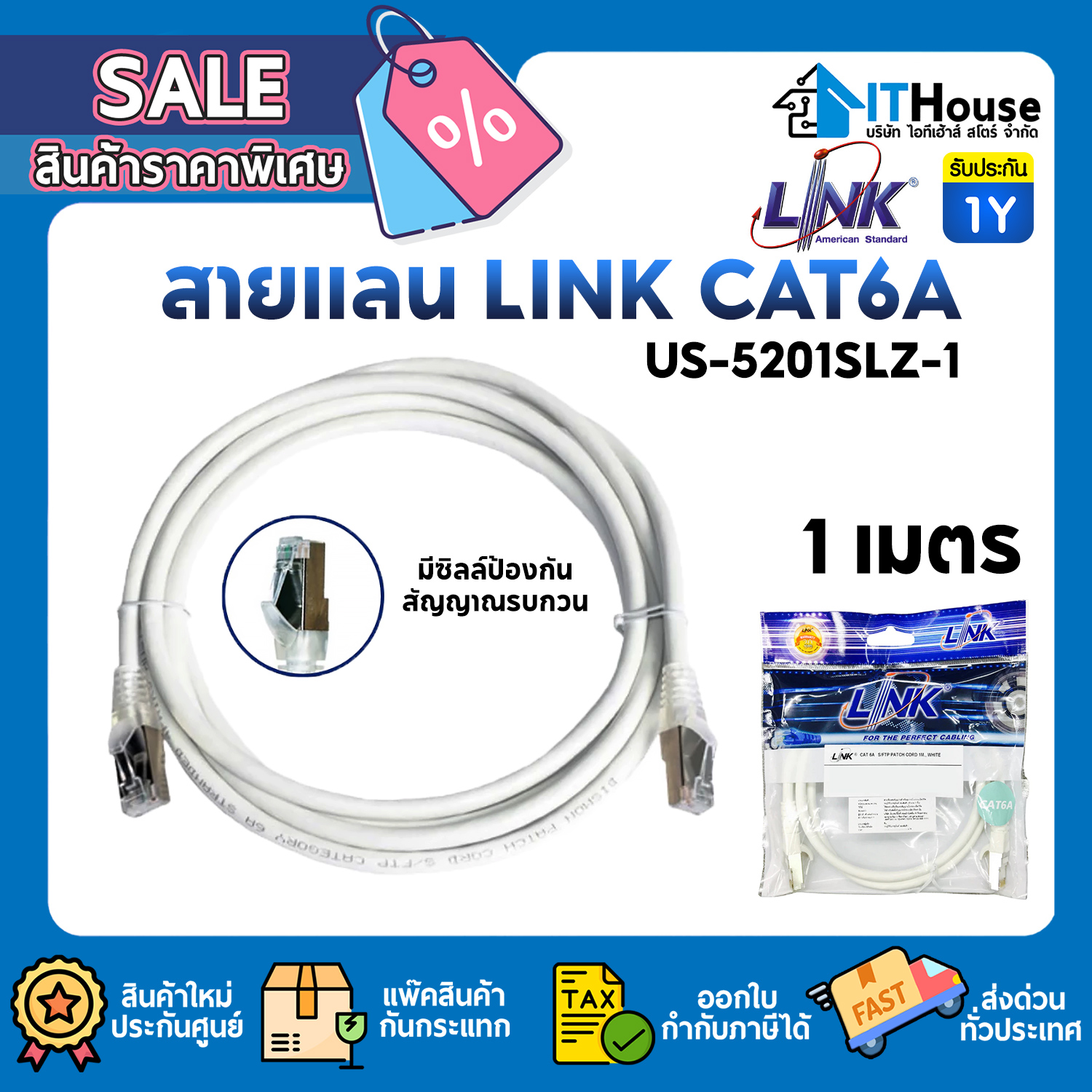 LAN CABLE : LINK CAT6A 2m. WHITE (US-5202SLZ-1) #LT