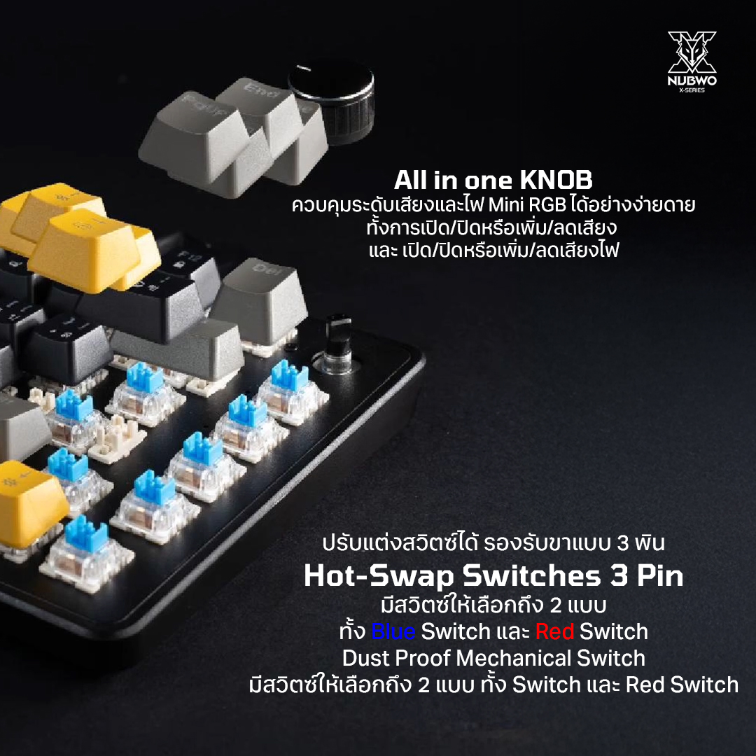 - สวิตซ์มีให้เลือกถึง 2 แบบ Blue / Red