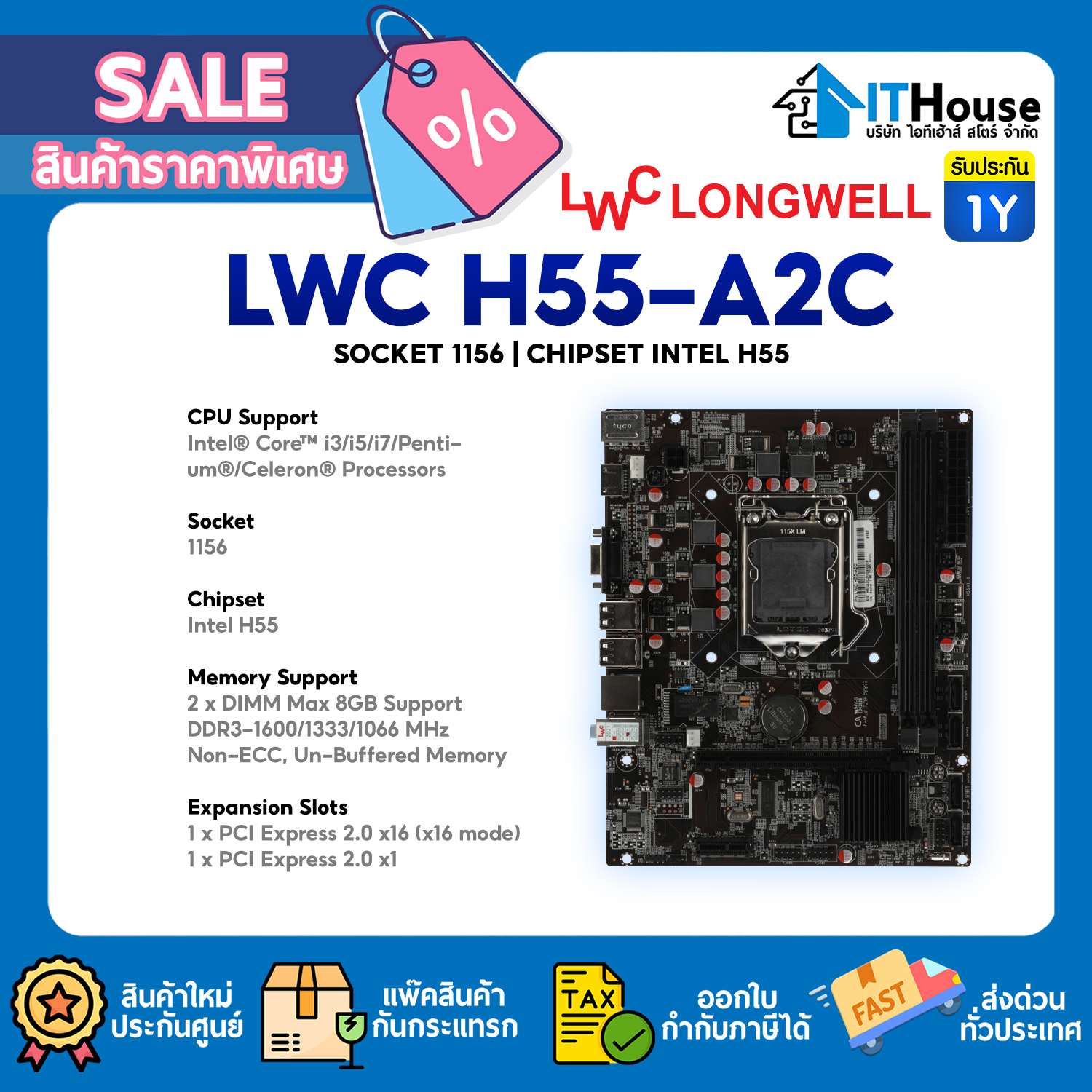 - 2 x DIMM Max 8GB Support DDR3-1600/1333/1066 MHz Non-ECC, Un-Buffered Memory