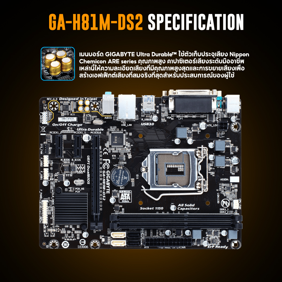 ▪ LPT, COM, D-SUB port on rear panel