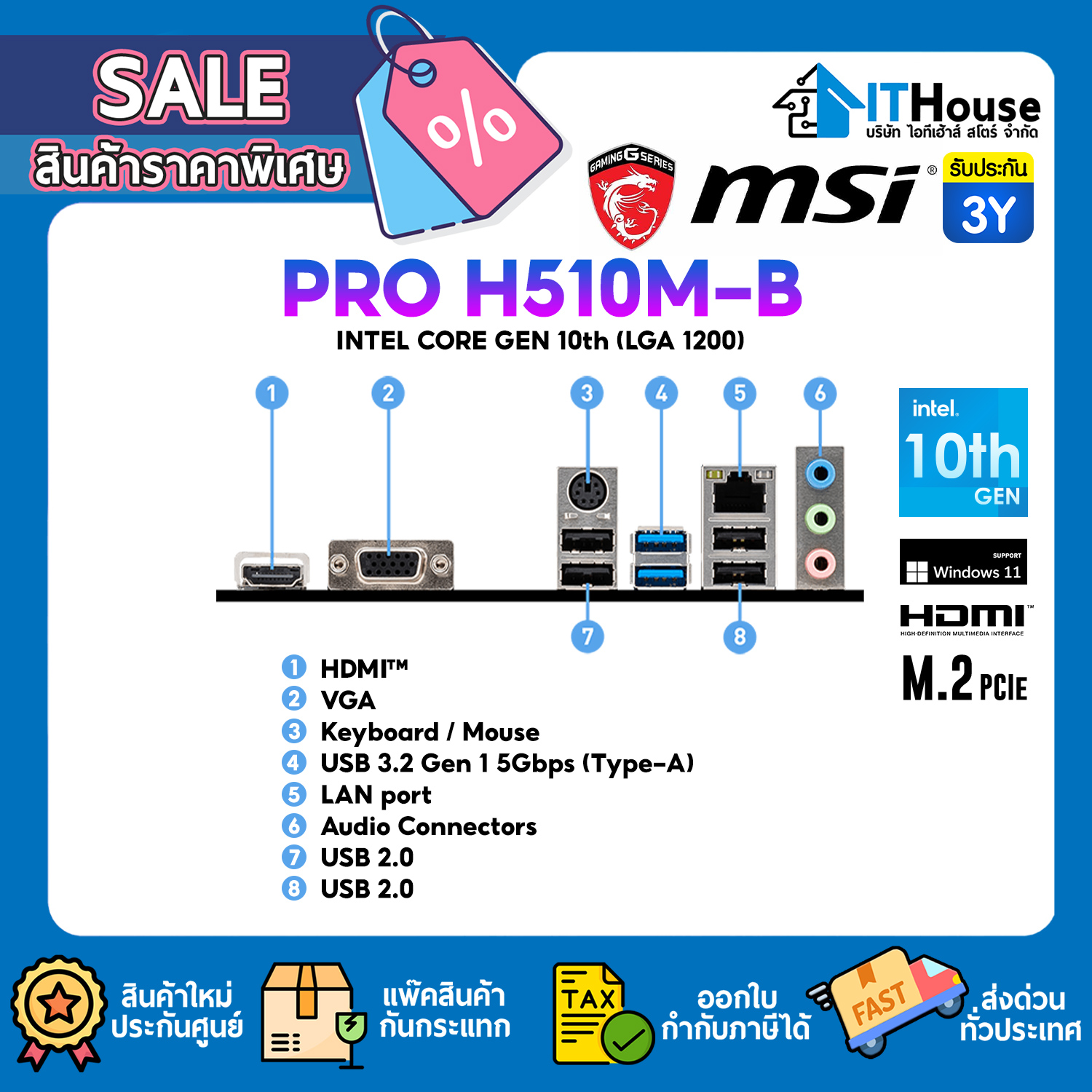 - Supports 1R 2133/ 2666 MHz for Intel® Core™ i5/ Core™ i3/ Pentium® Gold and Celeron® CPU
