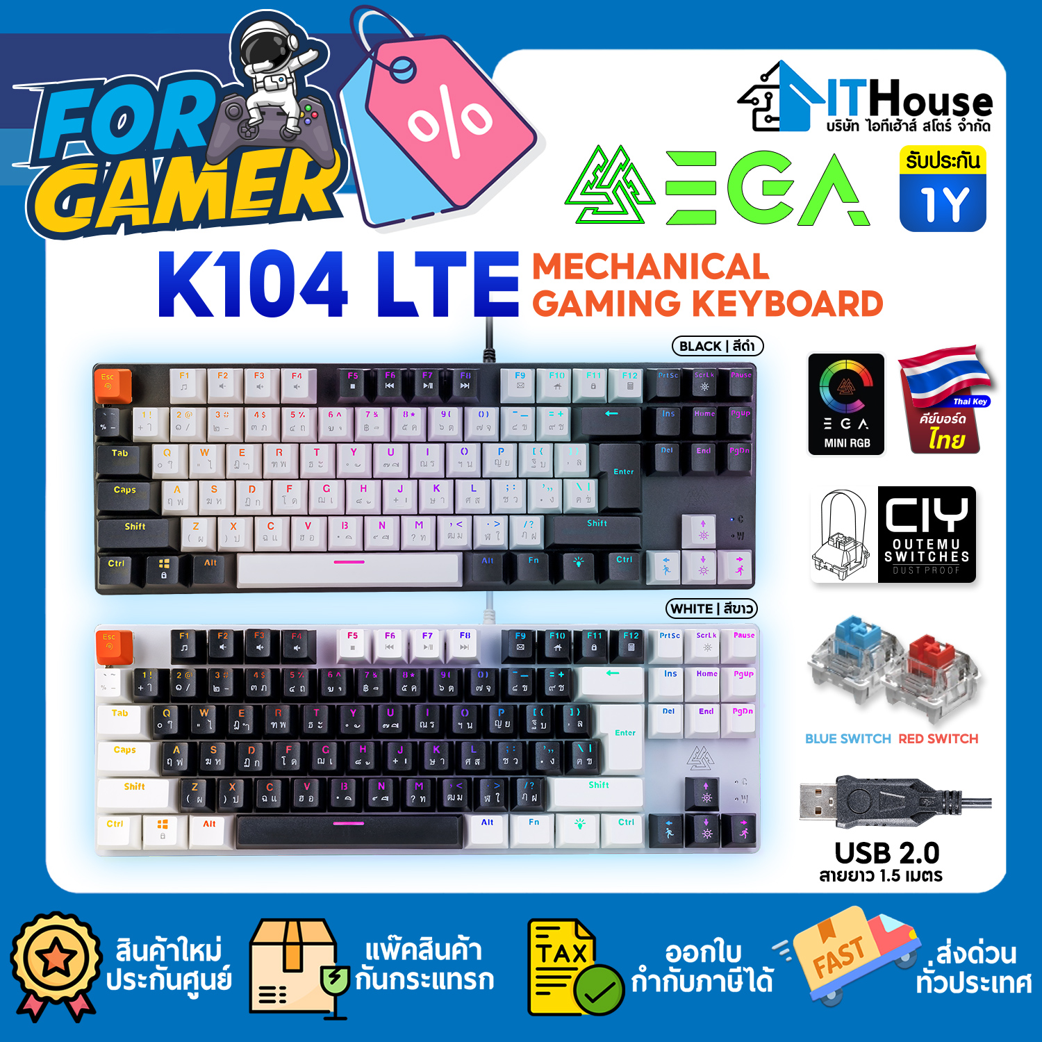 USB KEYBOARD : EGA TYPE K10 (BLUE/WHITE) #2Y