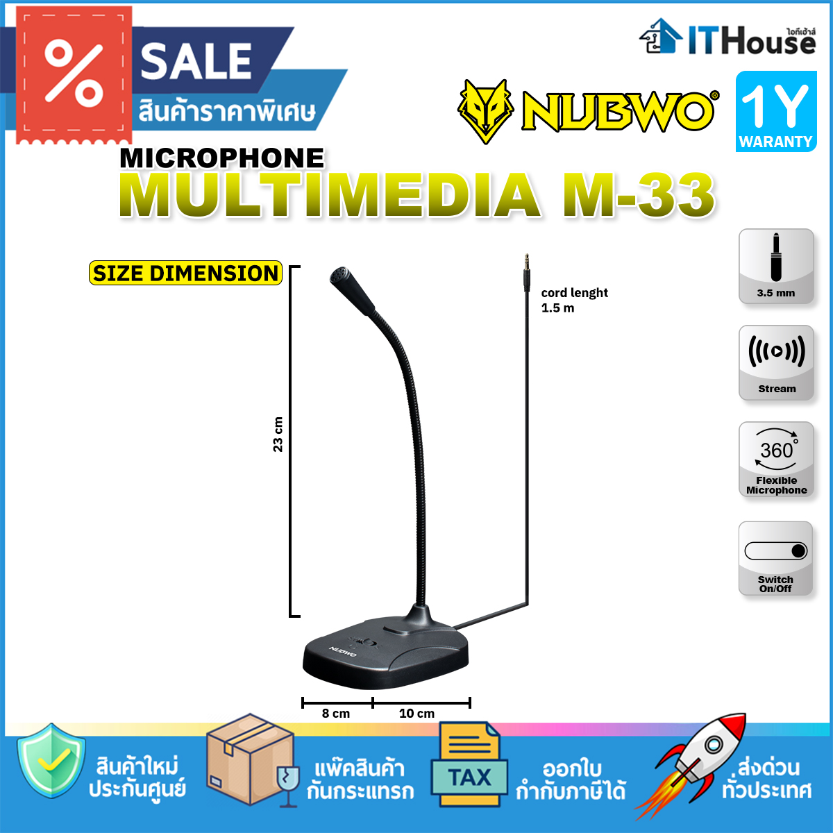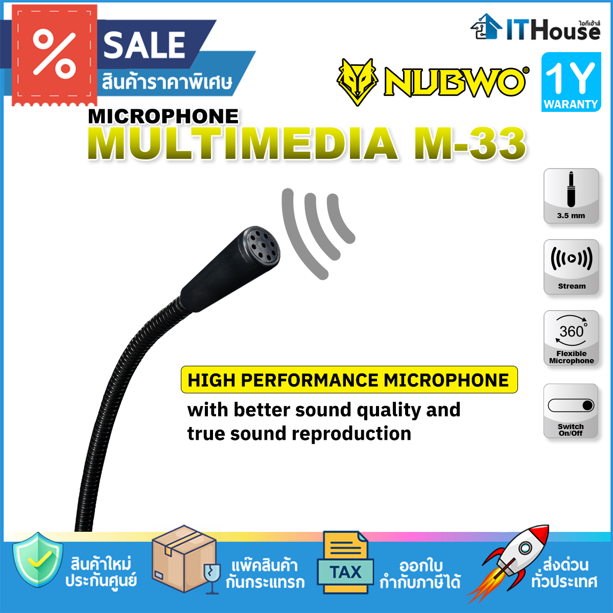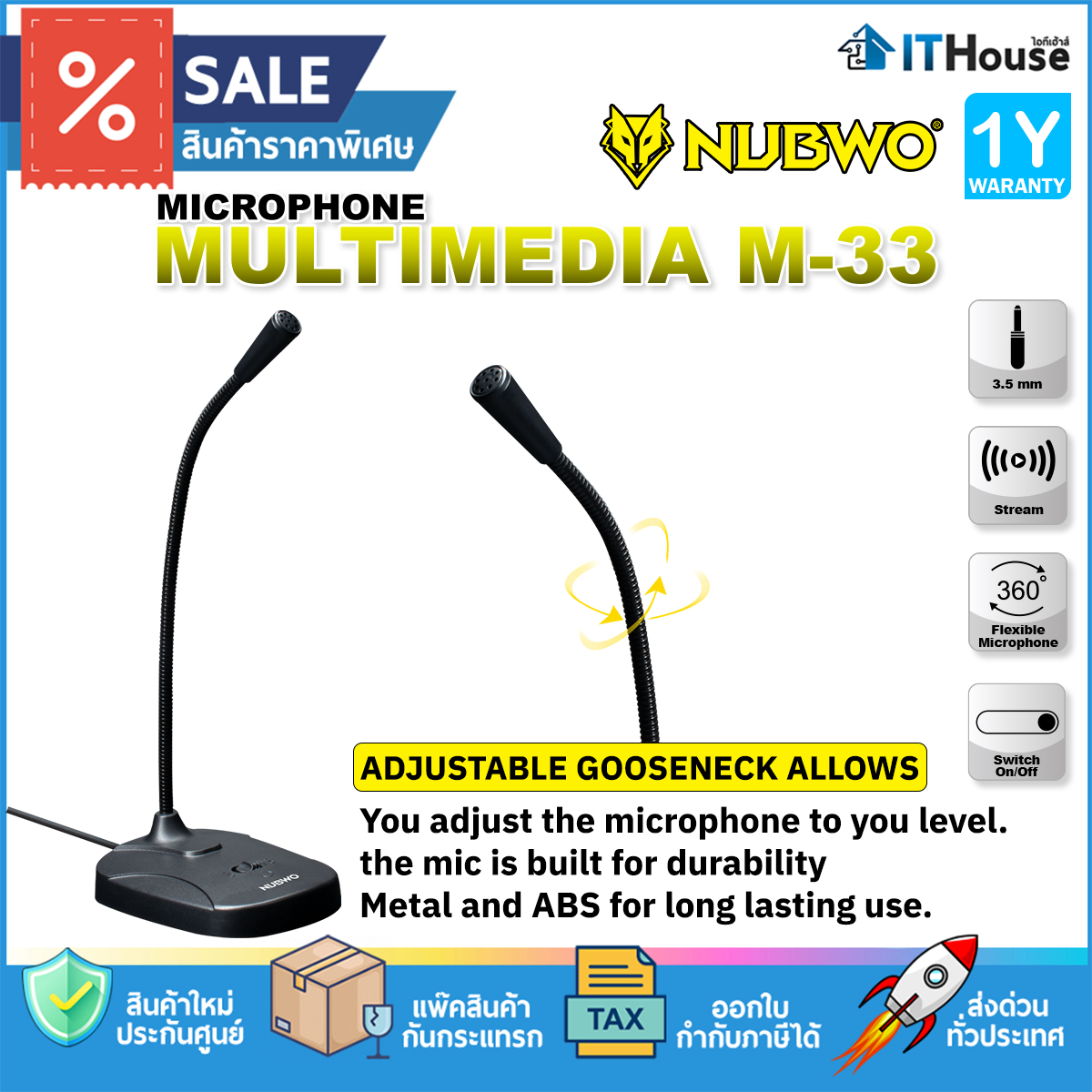 NUBWO M-33 MICROPHONE MULTIMEDIA ไมโครโฟนคอมพิวเตอร์แบบตั้งโต๊ะ ความไวเสียง 65dB ปรับก้านงอได้ 360°