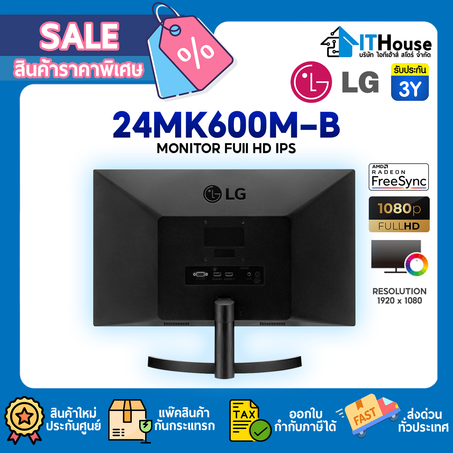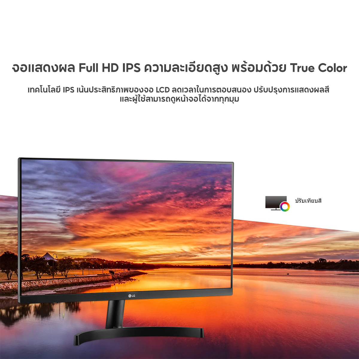 จอแสดงผล ขนาด 23.8 นิ้ว ความละเอียด Full HD พร้อมด้วย IPS มอบภาพที่สดใส รายละเอียดคมชัดไม่ว่าจะรับชมที่มุมใดก็ตาม