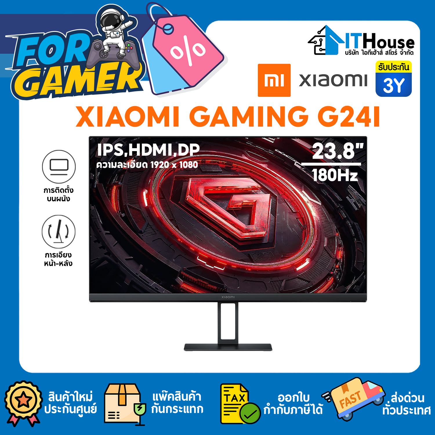 MONITOR 23.8" : XIAOMI GAMING G24I (IPS,HDMI,DP) 180Hz #3Y