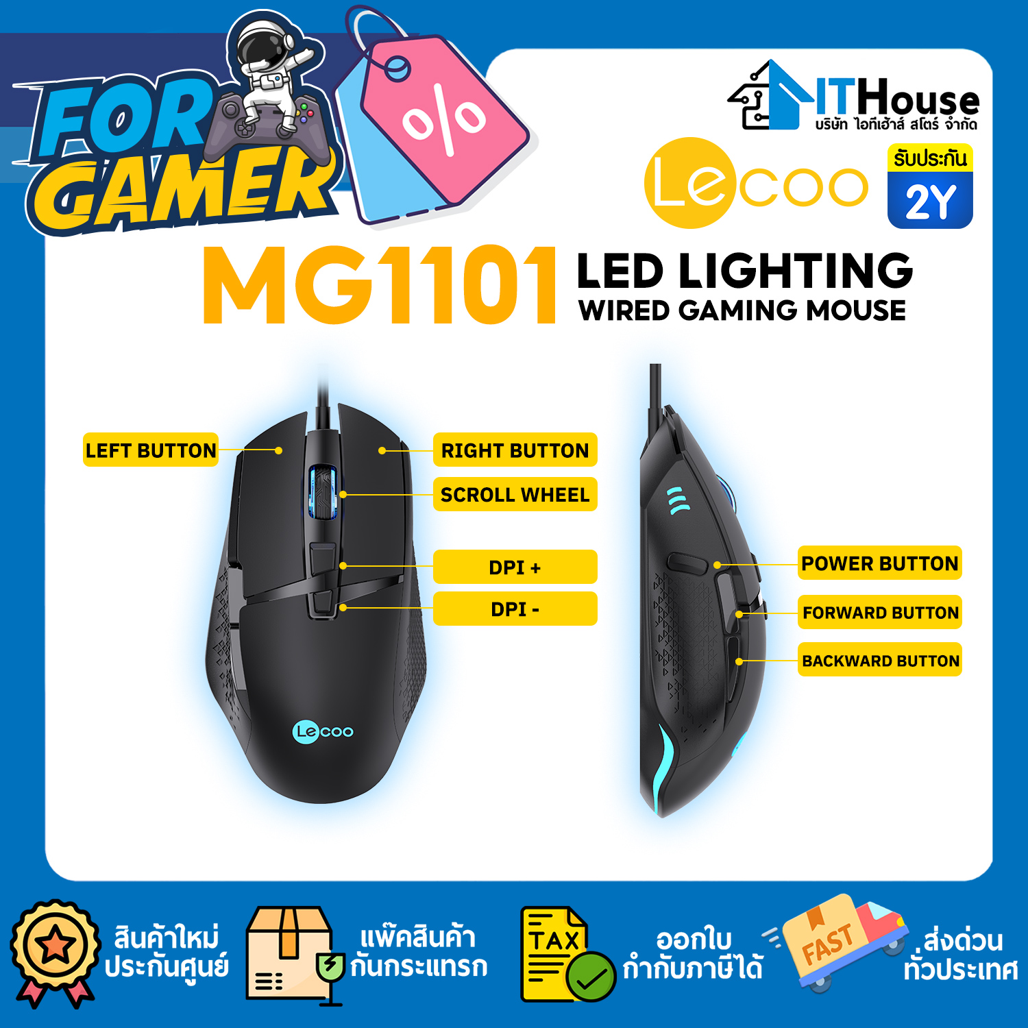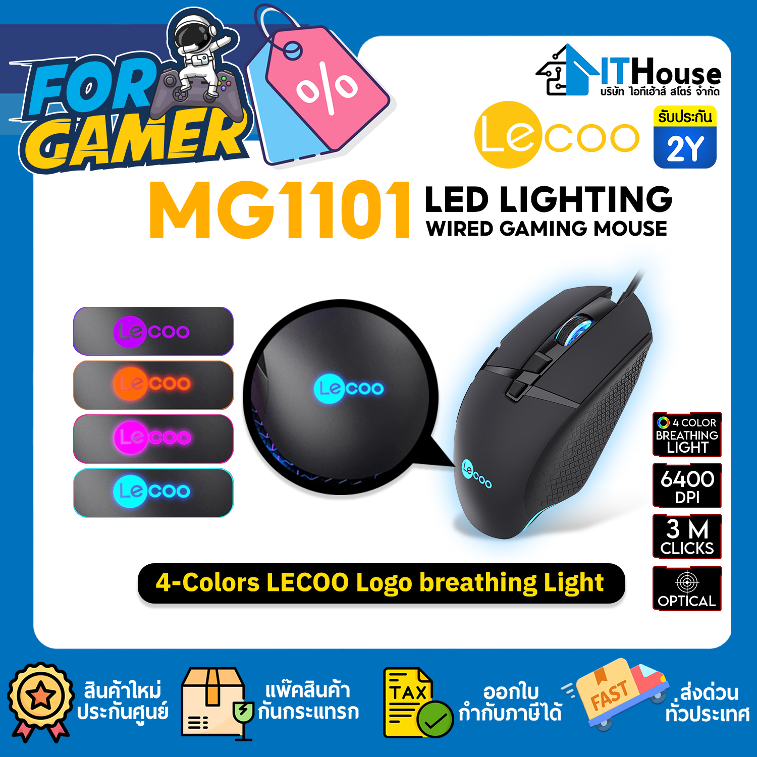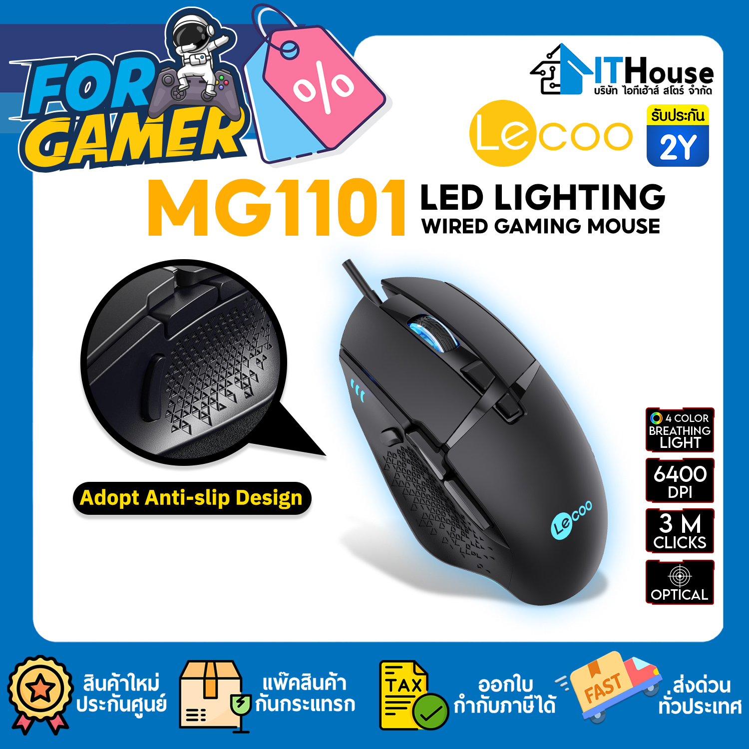 LENOVO LECOO MG1101 เมาส์เกมมิ่ง 8 ปุม ปรับ DPI ได้ถึง 6,400 DPI รองรับการใช้กด 3 ล้านครั้ง 4 LED Breathing Light