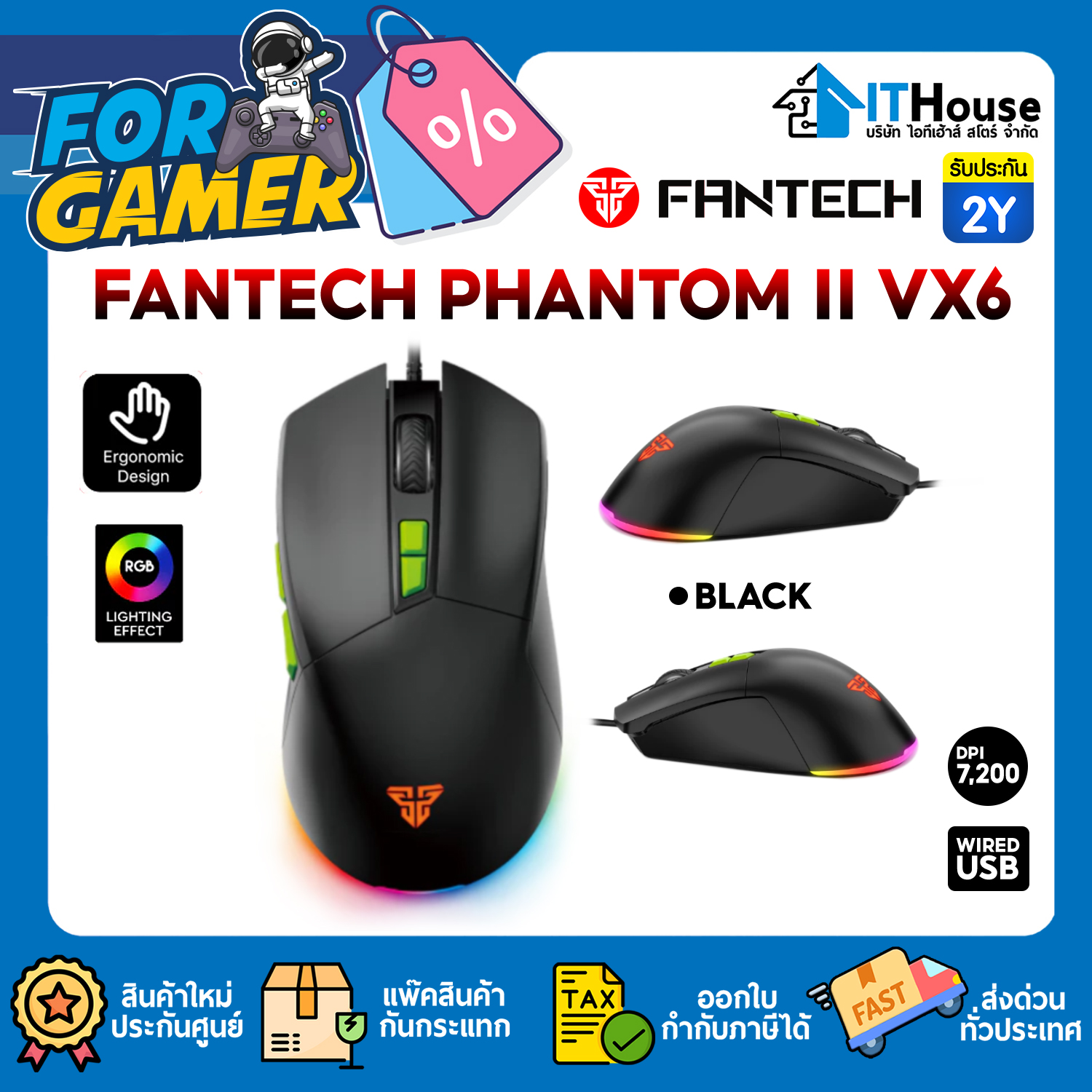 ● FANTECH Mouse Gaming รุ่น Phantom II VX6