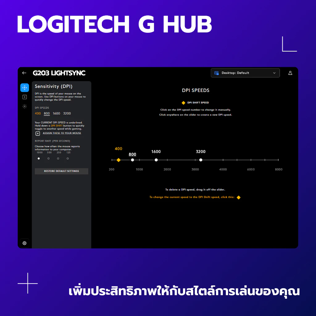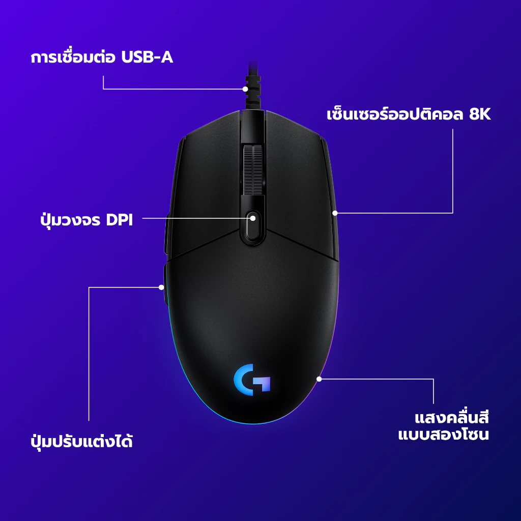 ▪ อัตราการรายงาน USB: 1000Hz (1ms)