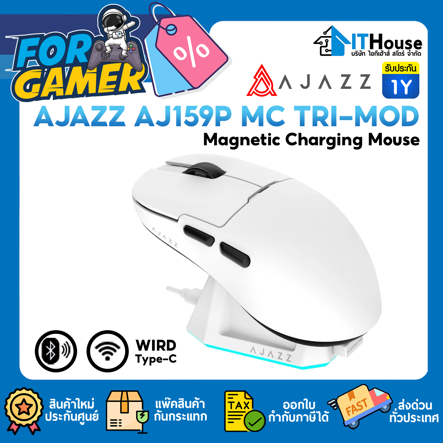 Ajazz AJ159P MC Tri-Module Wired+2.4G+Bluetooth PAW3311 Chipset Wireless Mouse with Wireless Charging Station
