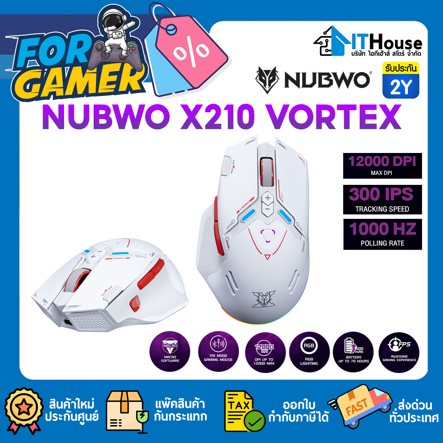 MOUSE TRI MODE : NUBWO X210 VORTEX (WHITE) #2Y