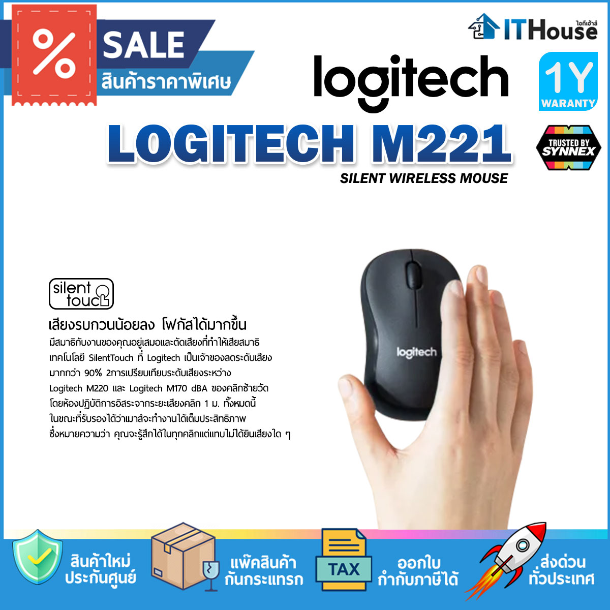 ★ เทคโนโลยี SilentTouch ลดเสียงคลิกซ้าย/ขวา, คลิกกลางลง 90% 8การเปรียบเทียบระดับเสียงระหว่าง Logitech M220 และ Logitech M170 dBA การคลิกซ้ายวัดจากห้องปฏิบัติการอิสระที่ระยะ 1 ม.