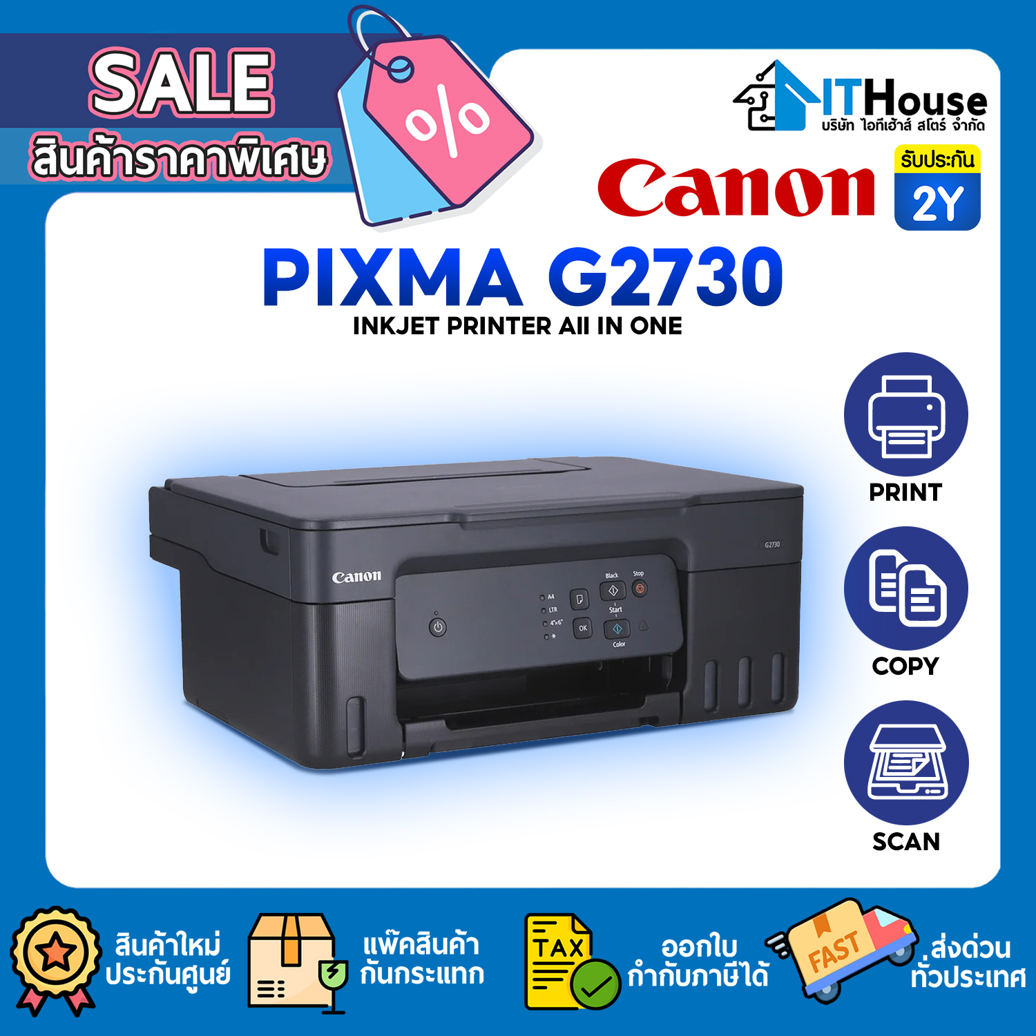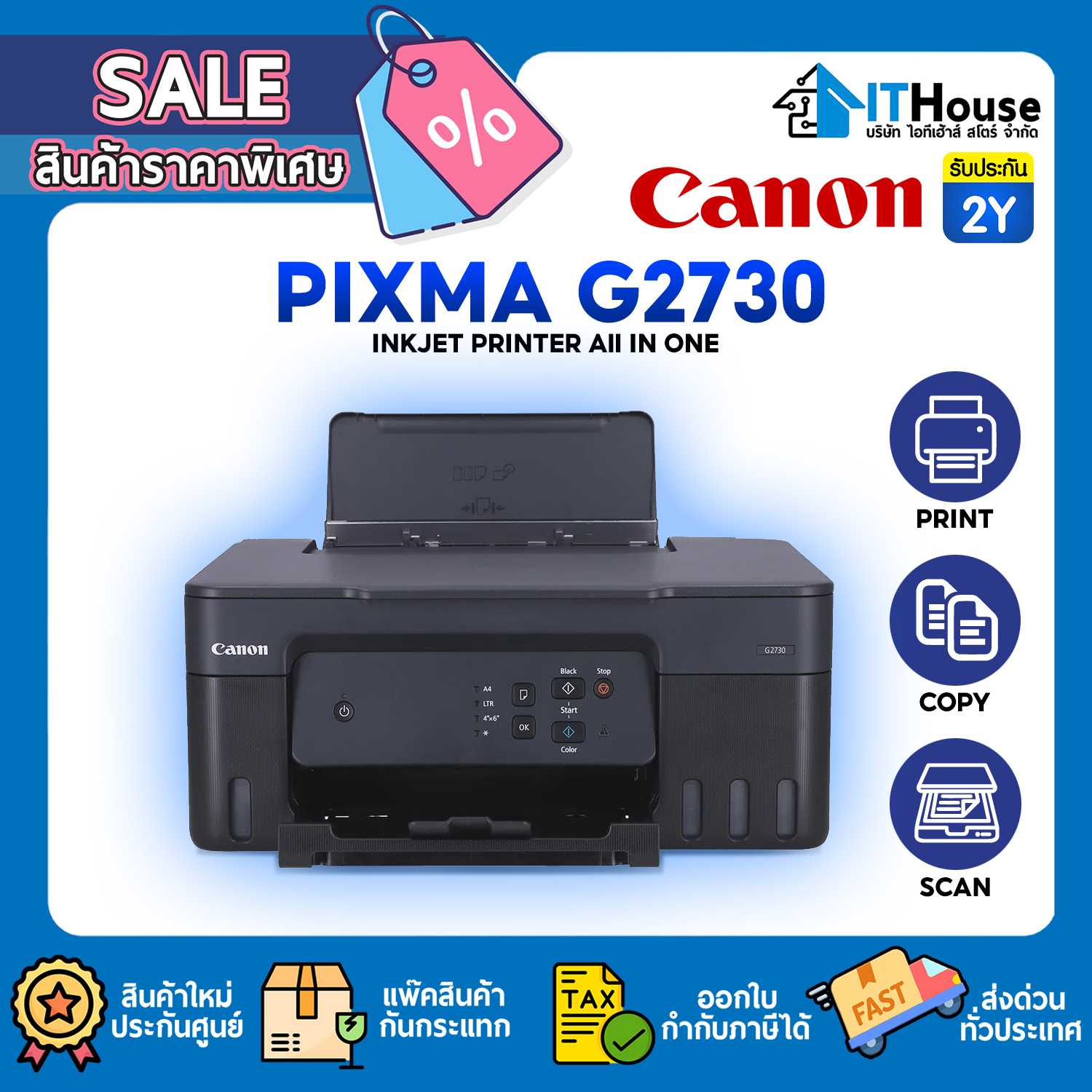 Canon เครื่องพิมพ์อิงค์เจ็ท PIXMA รุ่น G2730 รับประกัน 2 ปี หรือ 30,000 แผ่น