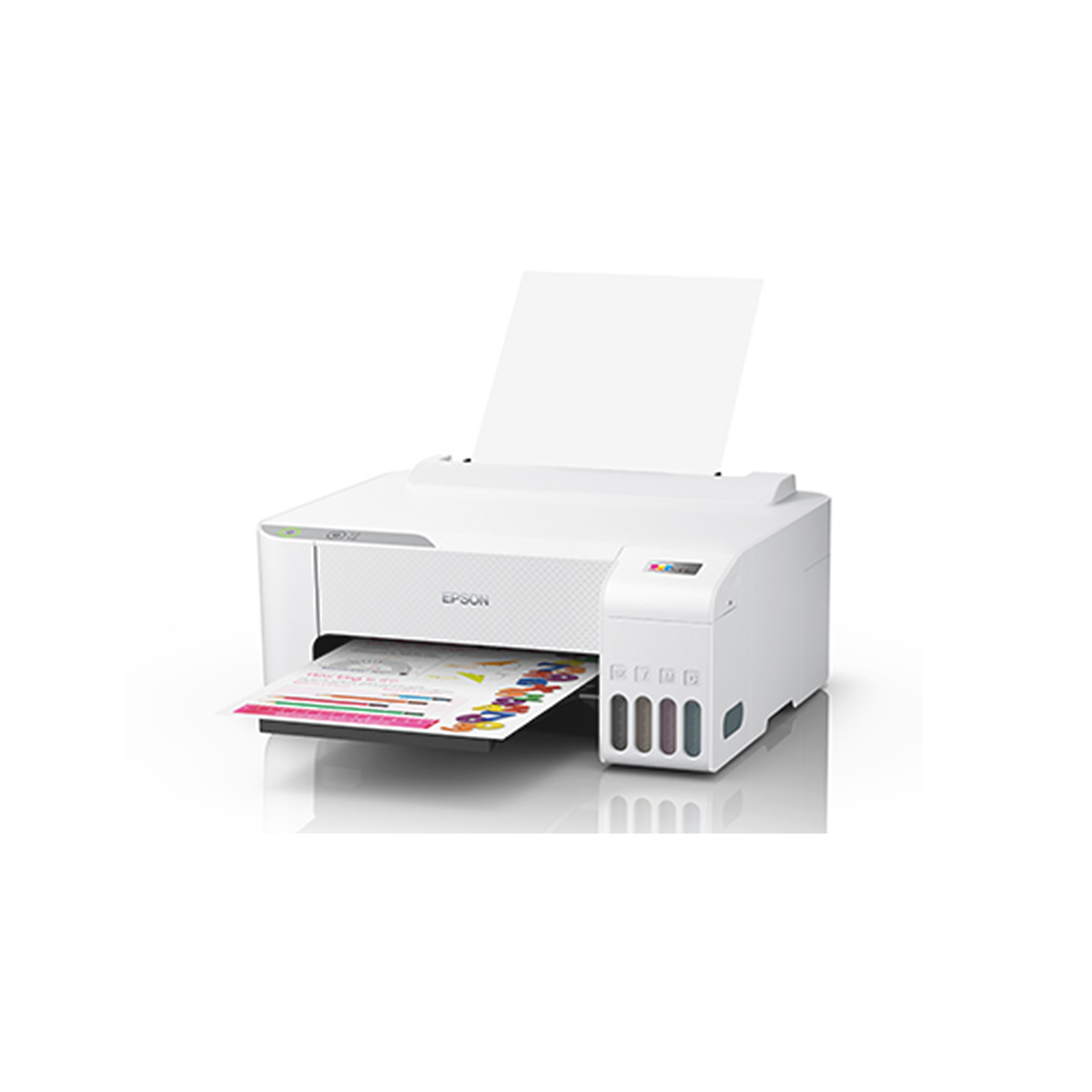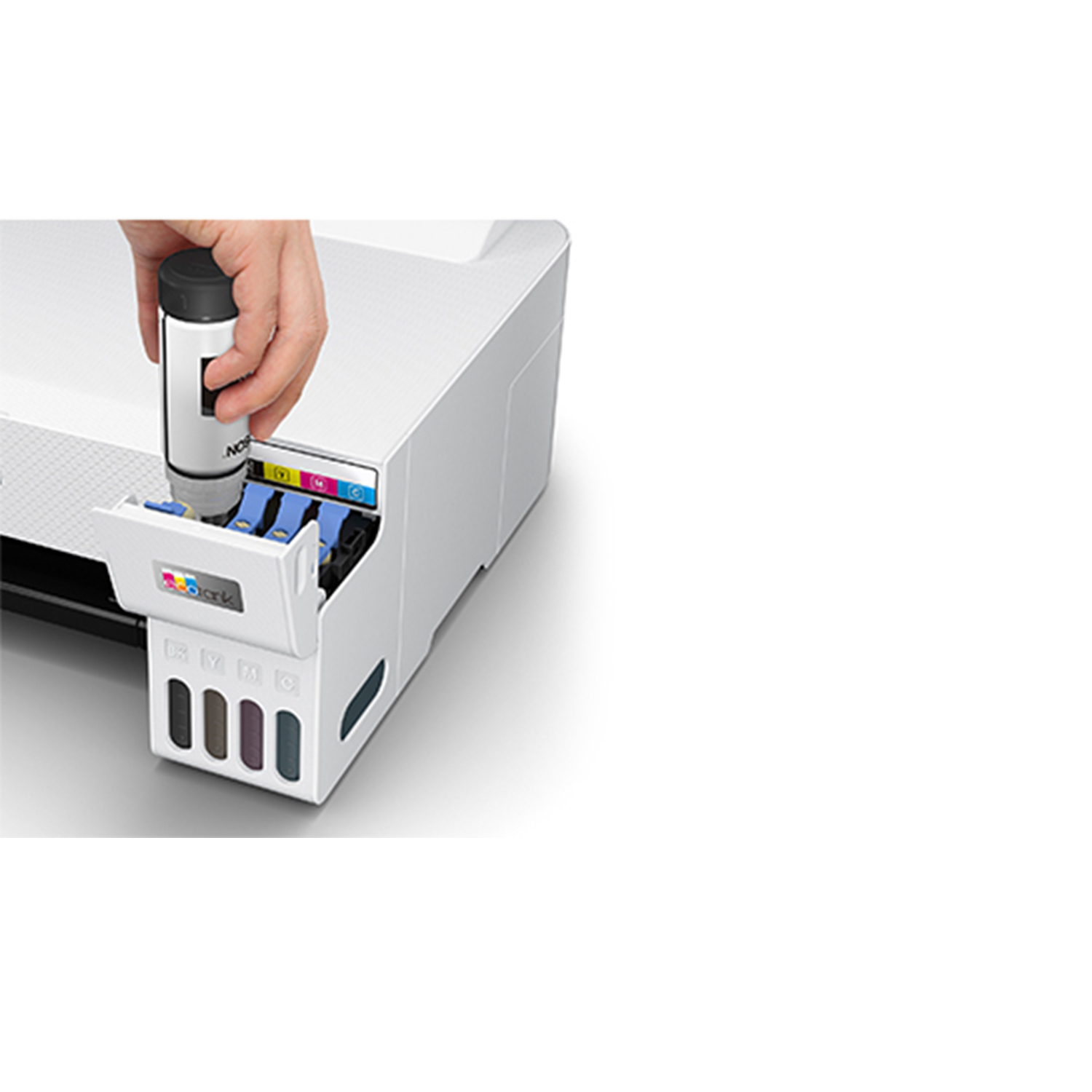 เครื่องพิมพ์แท็งค์แท้ ขนาดกะทัดรัด ขวดหมึกดีไซน์เป็นเอกลักษณ์ ช่วยให้การเติมหมึกเป็นเรื่องง่าย ไม่หกเลอะเทอะ ไม่เติมหมึกผิดสี