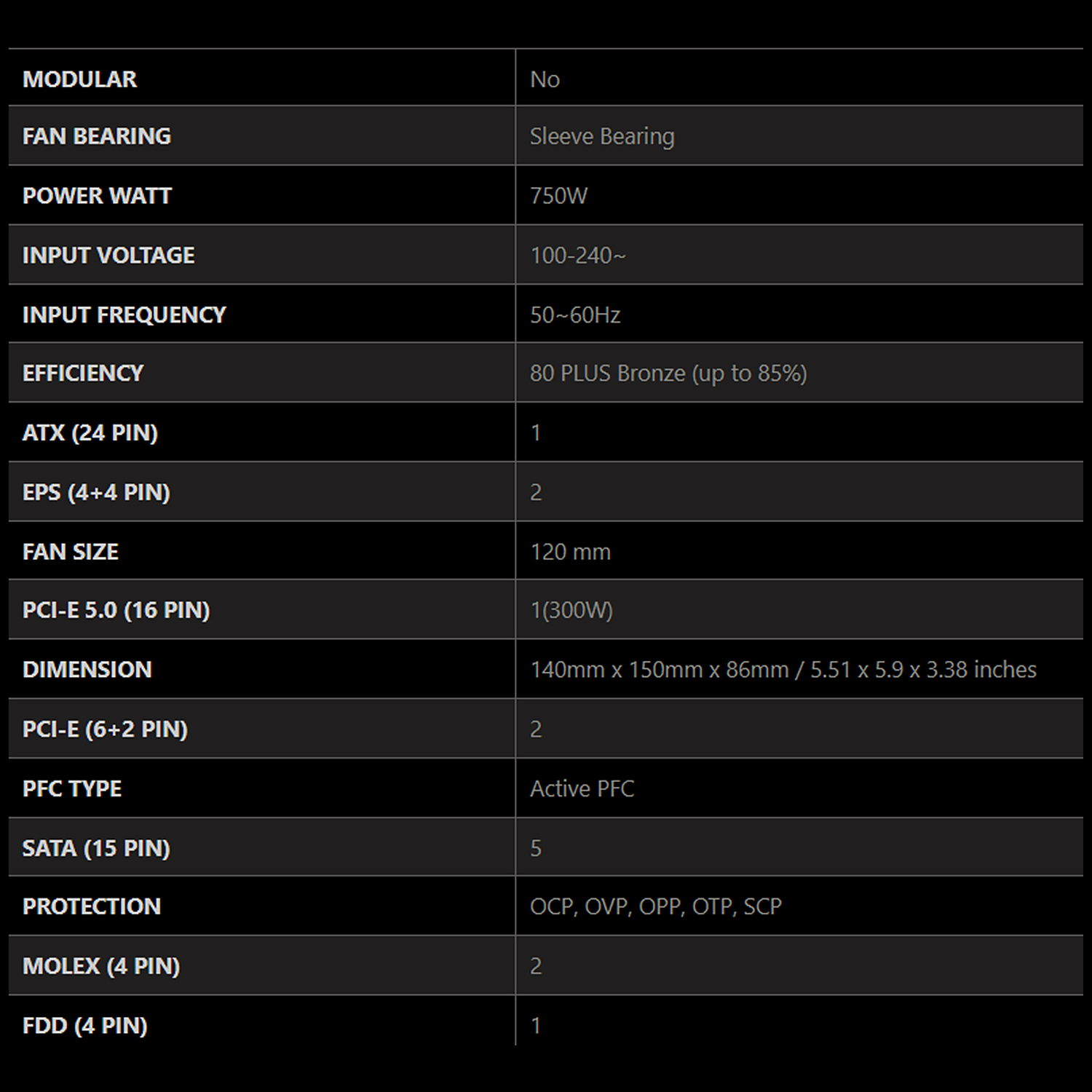 PSU (80+ BRONZE) : MSI 650W (MAG-A650BN) #5Y