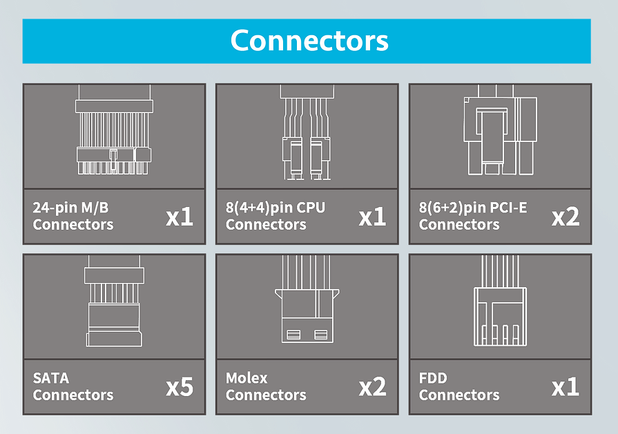 ⚡PCIe Power Connector : 2x 6+2 Pin PCI-E