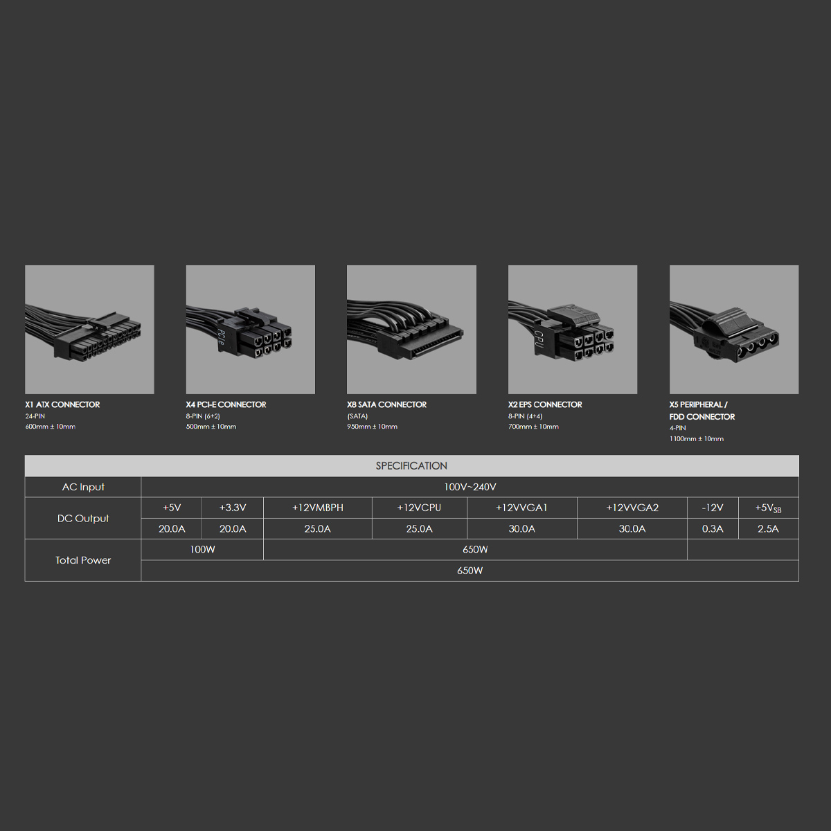 - Maximum Power 650 W
