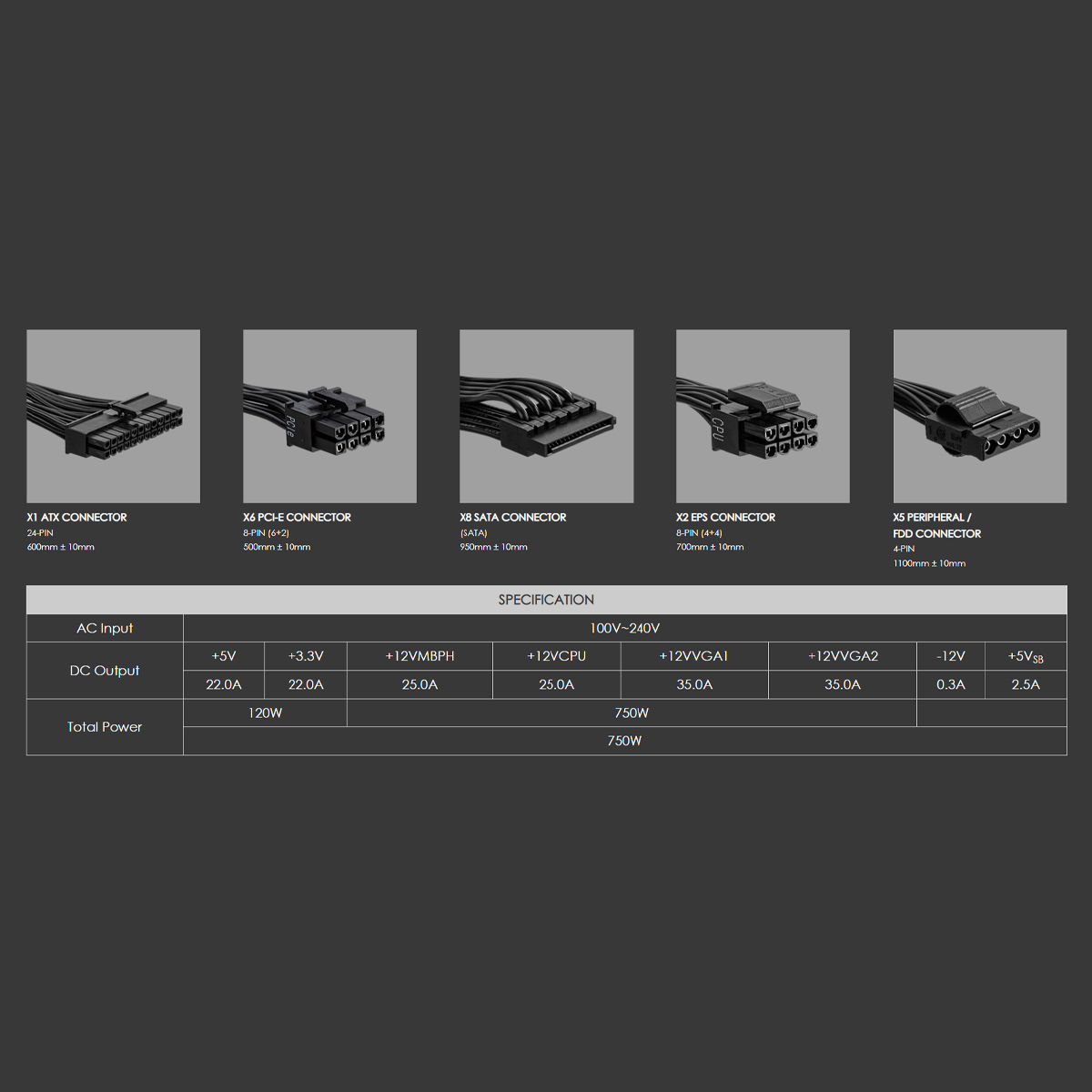 - Full modular cable design