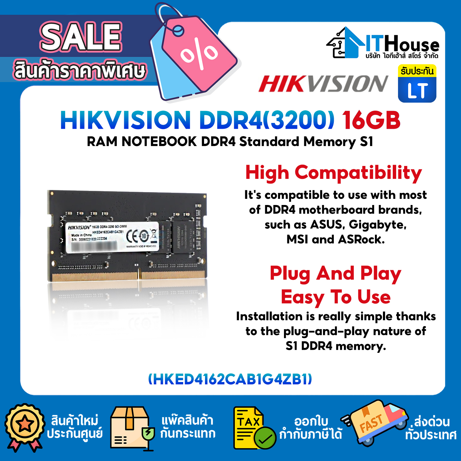 RAM NOTEBOOK : DDR4(3200) 16GB HIKSEMI (HSC416S32Z1) #LT