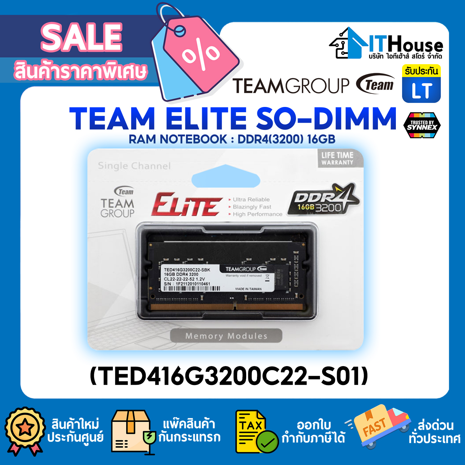TEAMGROUP ELITE SO-DIMM (TED416G3200C22-S01) 16GB (16GBx1) DDR4/3200 RAM NOTEBOOK (แรมโน้ตบุ๊ค)
