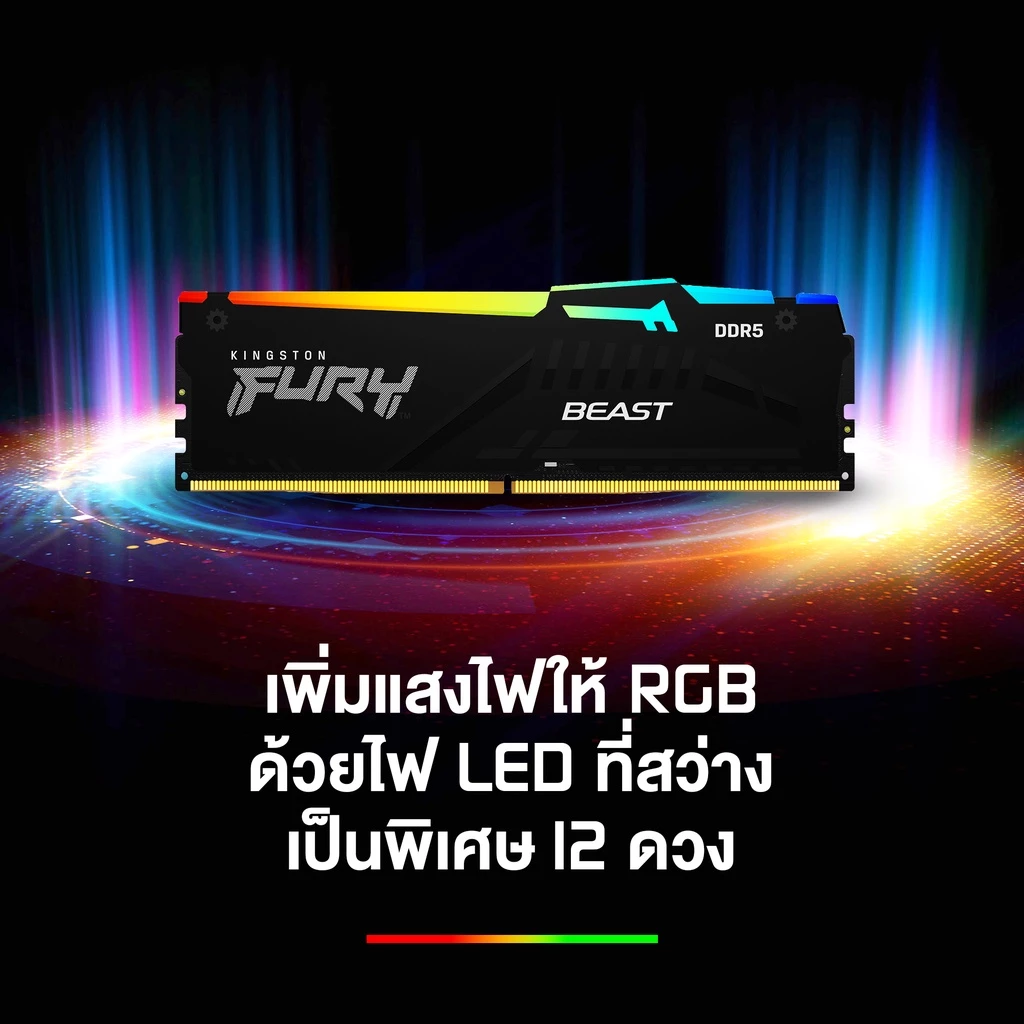 RAM PC : DDR5(5600) 8GB KINGSTON FURY BEAST RGB (KF556C40BBA-8) #LT