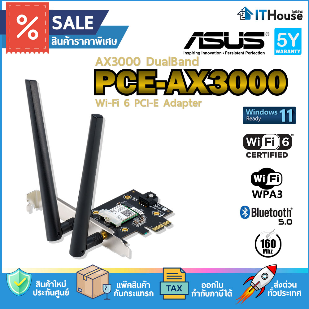 AX3000 Dual Band PCI-E WiFi 6 (802.11ax). Supporting 160MHz, Bluetooth 5.0, WPA3 network security, OFDMA and MU-MIMO