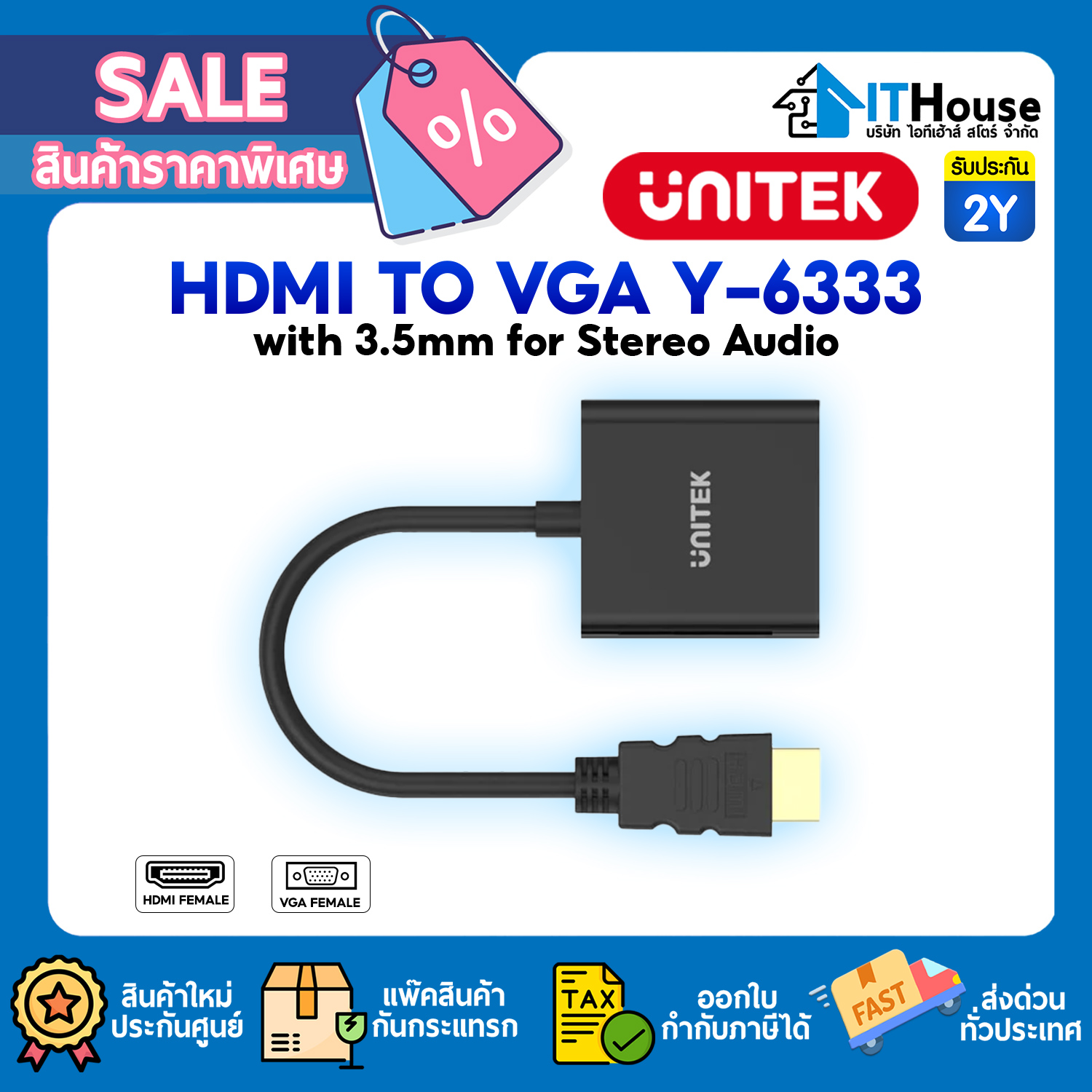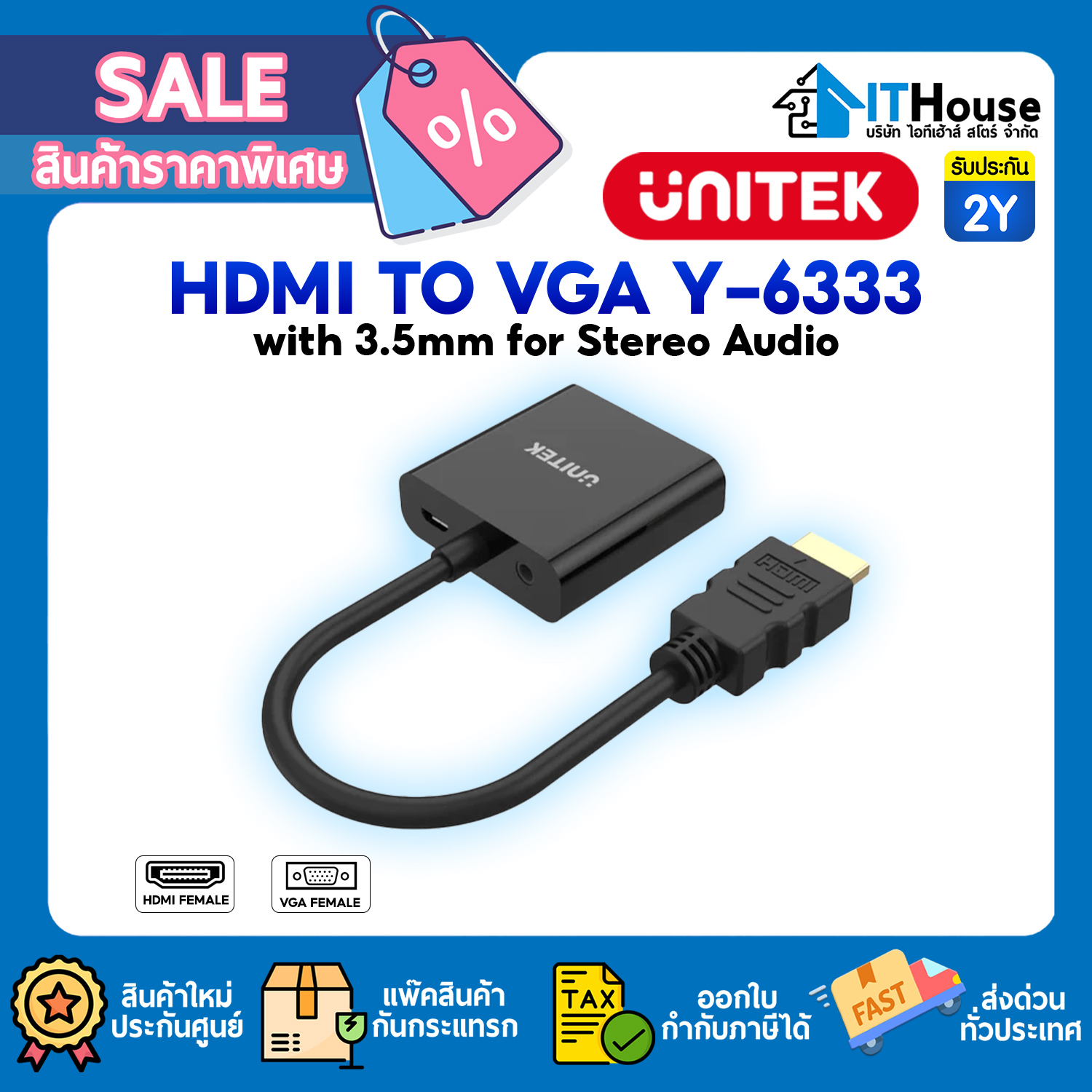 - ต่อสาย HDMI จากตัวเครื่องเข้าสู่อุปกรณ์ เพื่อแปลงสัญญาณภาพ ออกเป็น VGA